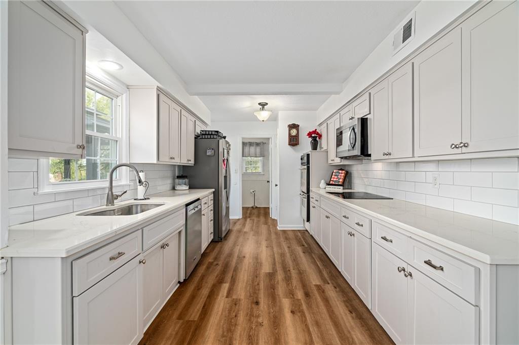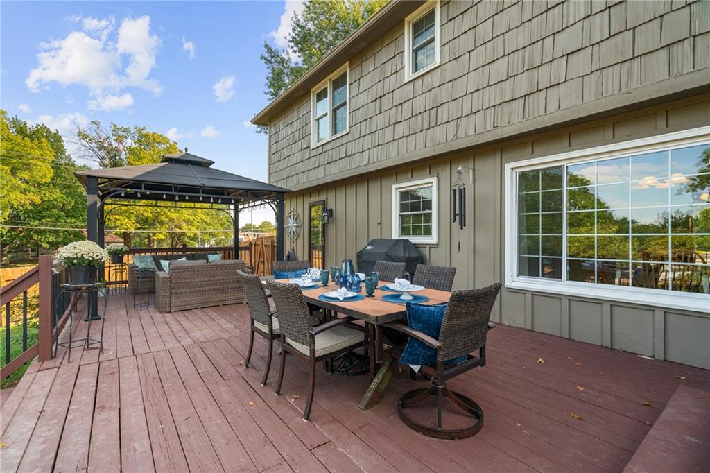 Welcome to this charming 5 bedroom, 2.5 bath home in the desirable Verona Hills neighborhood, just across from Avila University. Situated on over half an acre in one of Kansas City's most established communities, this home is full of warmth and character. Inside, the main level features a spacious living room, family room, and dining area, creating an easy flow for gatherings and everyday living. Just a few steps away, the updated kitchen connects beautifully through a classic brick archway framing the brick fireplace, the warm centerpiece of the home. Upstairs are four comfortable bedrooms, including a primary suite with private bath, and the top-level fifth bedroom offers a quiet retreat for guests or a home office. A non-conforming sixth bedroom with a private walkout patio adds flexibility for a guest suite, home gym, or mother-in-law option. Outdoor living shines with a large wood deck, covered patio, and a beautifully landscaped front and backyard. The large fenced backyard is perfect for football, soccer, or evening games of catch, with additional yard space beyond the fence for gardening, playsets, or future expansion. A 6-foot privacy fence with a vehicle gate allows easy access for bringing in firewood for winter or fresh plants and soil for spring gardening. Enjoy the convenience of a prime location with nearby parks, schools, and easy highway access, all while relaxing in a home filled with character and modern updates. Don’t miss this opportunity to own one of the larger lots in Verona Hills!
