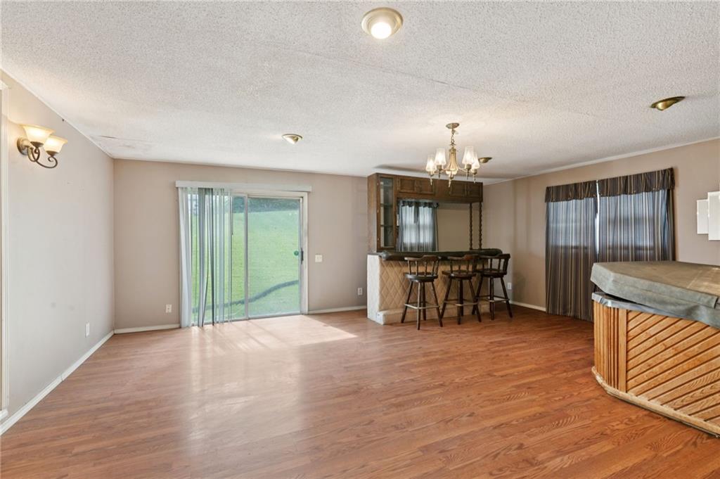 One owner raised ranch! 4th bedroom is non-confirming in basement. Spacious deck that runs across the front of house. Large family room with fireplace and opens to a recreational space with hot tub and bar. Wood floors throughout home. Metal siding for low maintenance. Fenced back yard. All appliances stay with property including washer and dryer.