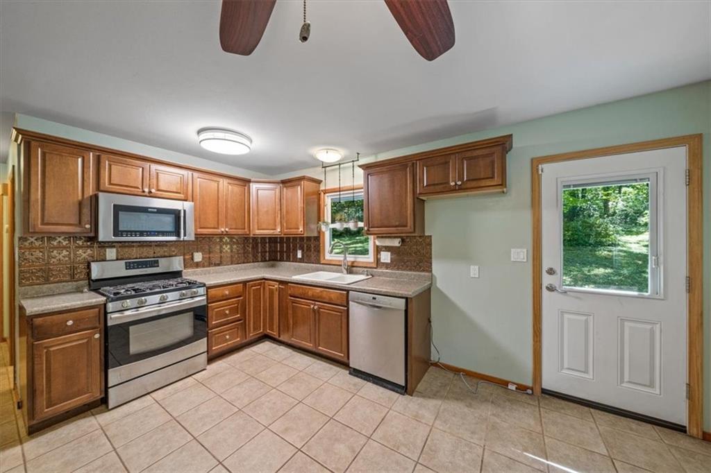 This property is a true hidden gem in Platte County, Missouri. It's not everyday that a home sitting on 3.44 acres in unincorporated Platte county becomes available. This 4 bedroom 2 bath home has endless possibilities for its new owners. With a little love and your vision, this property could easily be your dream estate. The home currently boasts a nature lovers paradise. Sit on the front porch and enjoy the expansive property complete with walnut trees and plenty of privacy. Inside the home, you'll find wood floors throughout most areas and newer doors and windows. The main level has a cozy kitchen with updated appliances and an eat-in kitchen area. The living room offers a large picture window with a wonderful view of the front of the property and leads to the two main floor bedrooms and a full bathroom. The second floor adds two additional bedrooms and a shared half-bathroom. The lower level includes an entrance from the driveway, a finished living space with a closet and a large unfinished area that houses the utilities and extra storage. You do not want to miss the opportunity to see this unicorn of a property. Home does share a driveway with the house up the hill. The driveway is on this property.