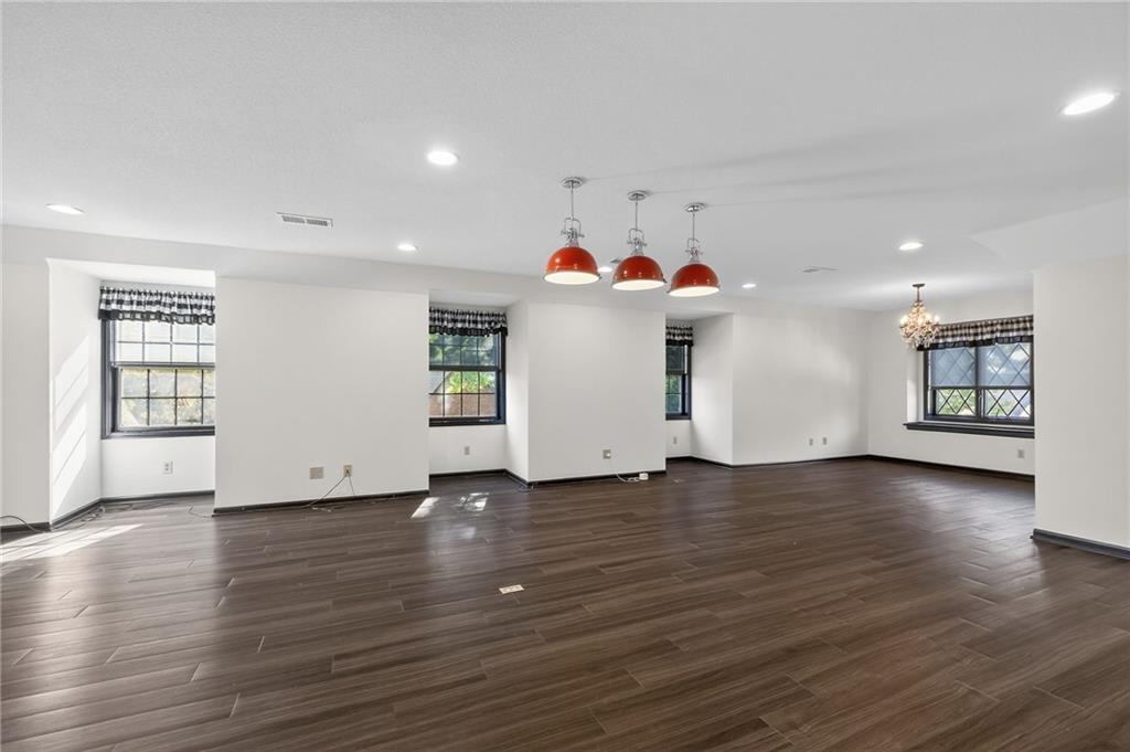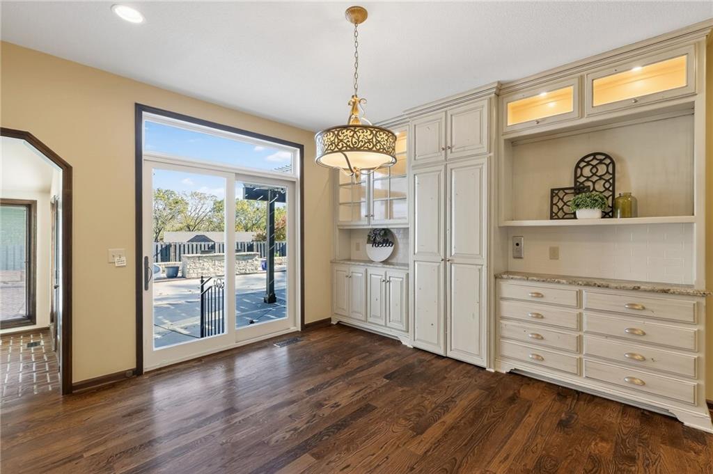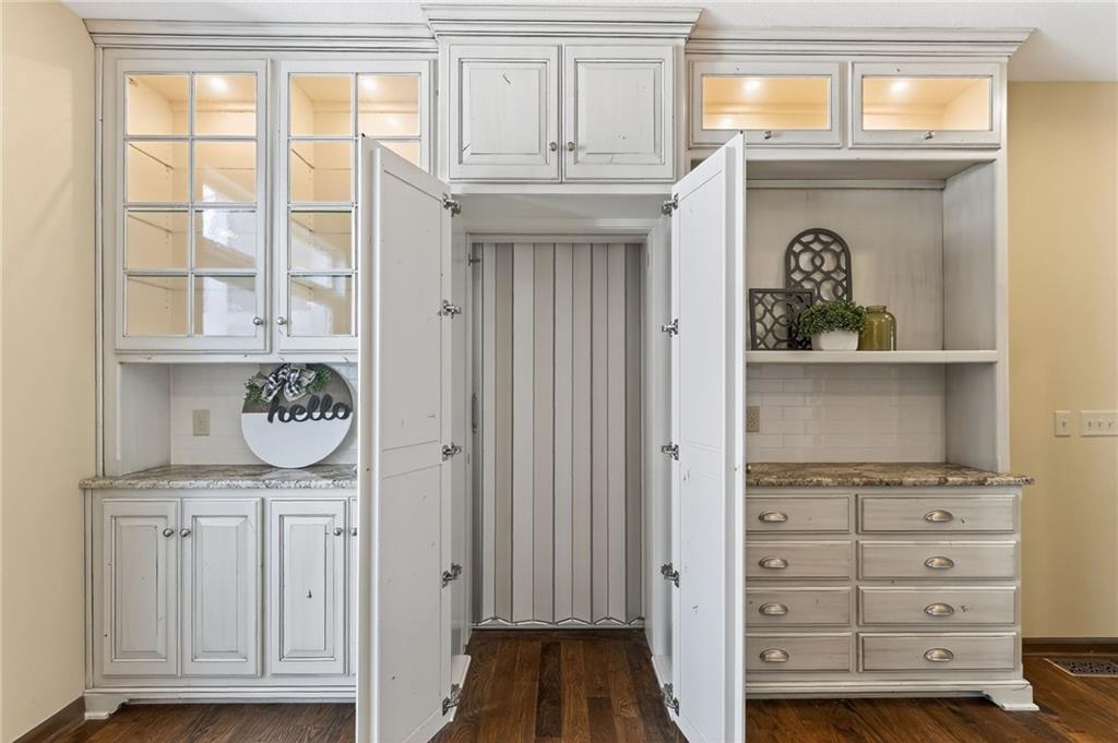 This meticulously renovated brick and stucco masterpiece seamlessly blends timeless elegance with modern luxury. Offering over 6,500 sqft, this 1.5-story home boasts sophisticated design, premium finishes, and an abundance of functional space—refined everyday living and grand-scale entertaining. Step inside to discover soaring ceilings, 3 fireplaces, a main floor study, dual staircases, elevator access, a 4 car side entry garage with suspended flooring. The expansive chef’s kitchen is a culinary dream, featuring a center island, breakfast bar, double pantry, and wet bar that flow beautifully into the formal dining room. A well-equipped laundry room adds everyday convenience just off the main living space. The main floor primary suite is a private retreat, offering his & her walk-in closets, a luxurious spa-inspired en-suite with heated floors, walk-in shower, soaker tub, premium finishes for true relaxation and comfort. Upstairs, you’ll find large family room with built-ins, oversized secondary bedrooms—each with its own private en-suite—and a retreat-style third bedroom complete with laundry hookups. The bonus wing offers limitless possibilities: craft room, playroom, home studio—you decide. It’s complete with a kitchenette and elevator access for ultimate flexibility. Head down to the finished lower level—an entertainer’s paradise featuring a spacious recreation room with a cozy fireplace, a full kitchenette, and a half bath. Ideal for game nights, movie marathons, or relaxed gatherings. Step outside to your private outdoor oasis featuring an in-ground heated swimming pool, firepit, and ambient outdoor lighting—perfect for entertaining or unwinding under the stars. A high-end 50-year roof ensures long-term peace of mind, while the inviting front porch and professionally landscaped grounds complete the outdoor experience. Located within walking distance to parks, trails, shopping, and dining, this exceptional home offers a blend of location, luxury, and lifestyle.