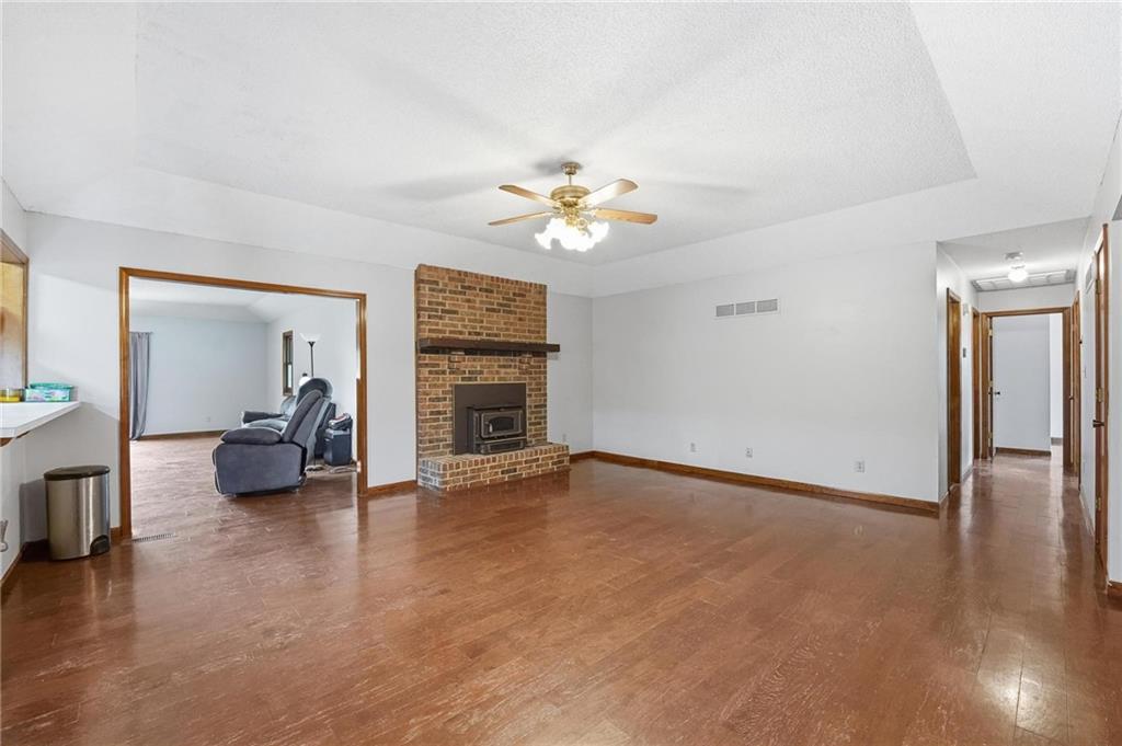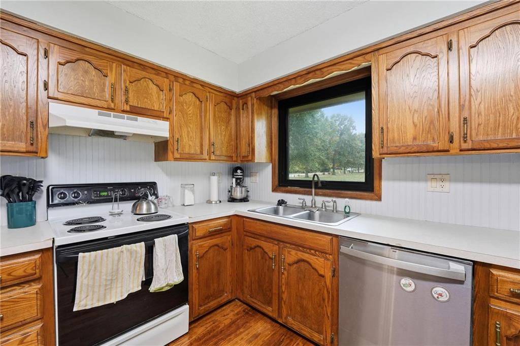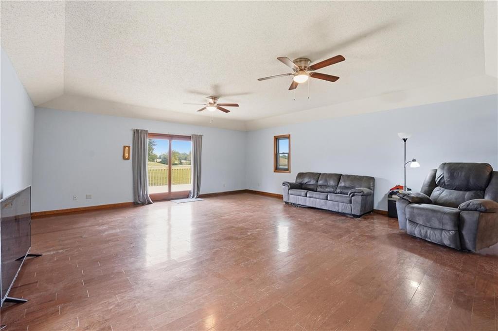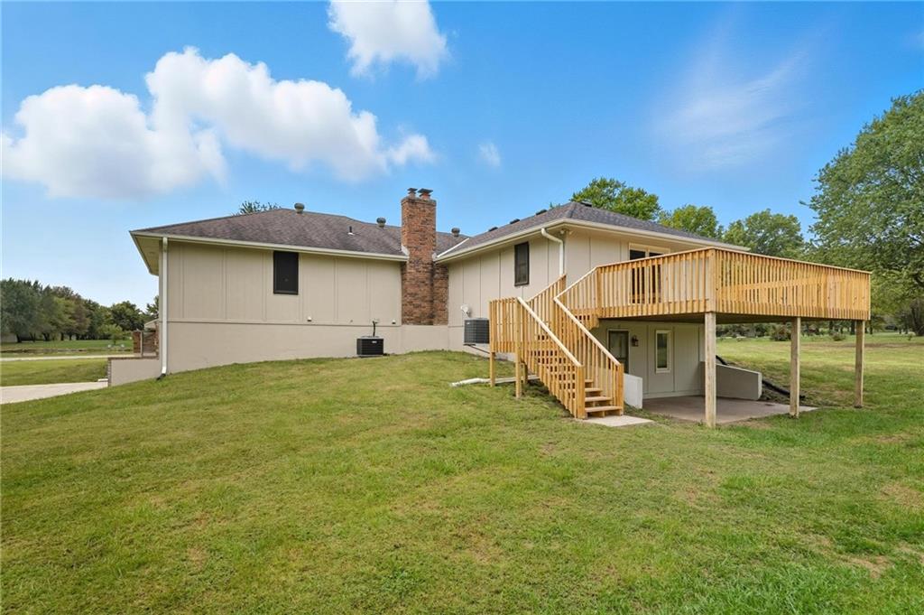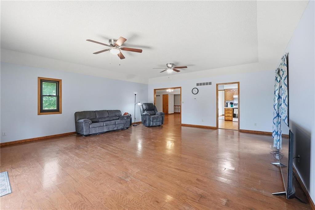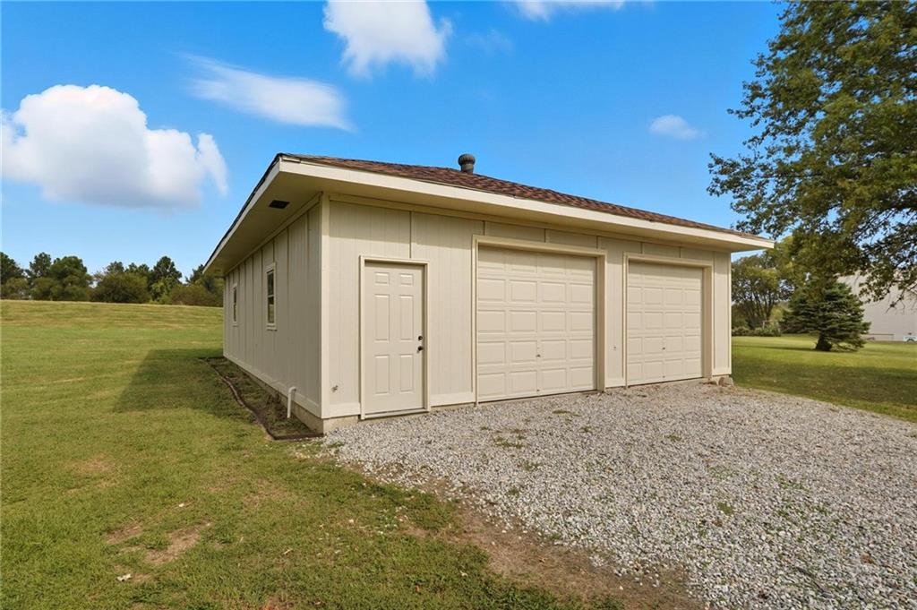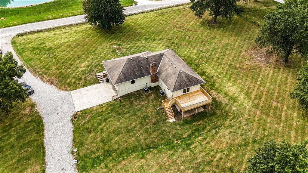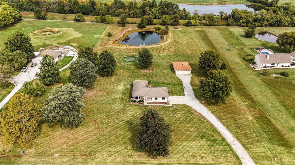 This property has everything for everyone - the acreage, pond and outbuilding for the outdoorsy type. The open floorplan, lots of space and 5 bedrooms for the indoors. Huge stocked pond with dock. 35x40 outbuilding with concrete floor, office, water and electric. Formal dining, living room with fireplace, kitchen and large family room with spacious deck and bedrooms and bathrooms with recent updates on main level. The large lower walkout level is all finished with additional bedrooms, family room and garage. There is so much space and room inside and outside on this amazing property! Do not miss this one! If you're the outdoorsy type, yes, deer hunting from the deck has been done. The pond is stocked with crappie, green sunfish and largemouth bass. Sellers transplanted 12 channel cats from Truman in 2013, and caught all but two back out by 2018. Put in 8 more in 2019 and left them alone. With SW or SE winds (so you're not shooting back at the house), there's good shooting on mid-late season ducks and geese, especially if you keep a hole in the ice. It's small enough sellers used a sump pump secured to a milk crate instead of an ice eater! Come enjoy life on this property!