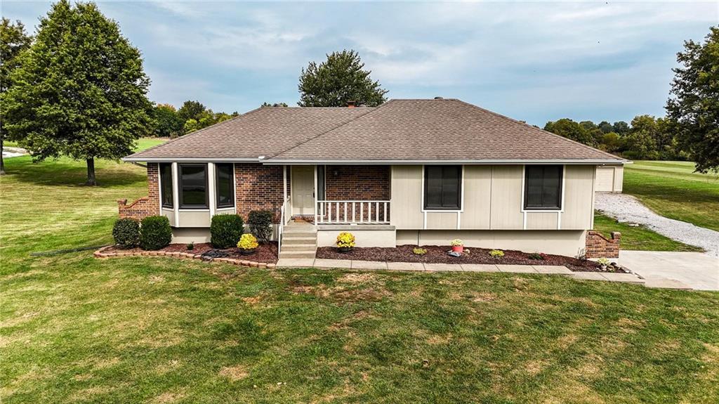 From Raymore, South on J Hwy to 198th St (aka Countrybook Dr). East to home on left. From Peculiar, North on J Hwy to 198th St. East to home on left.