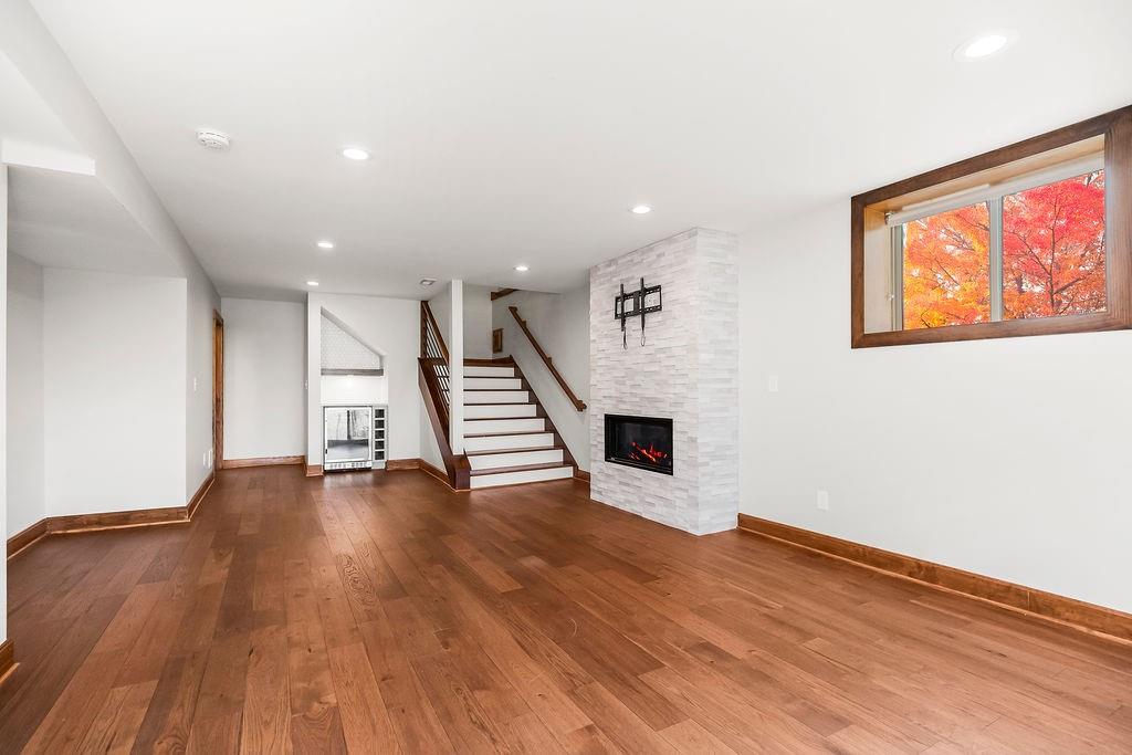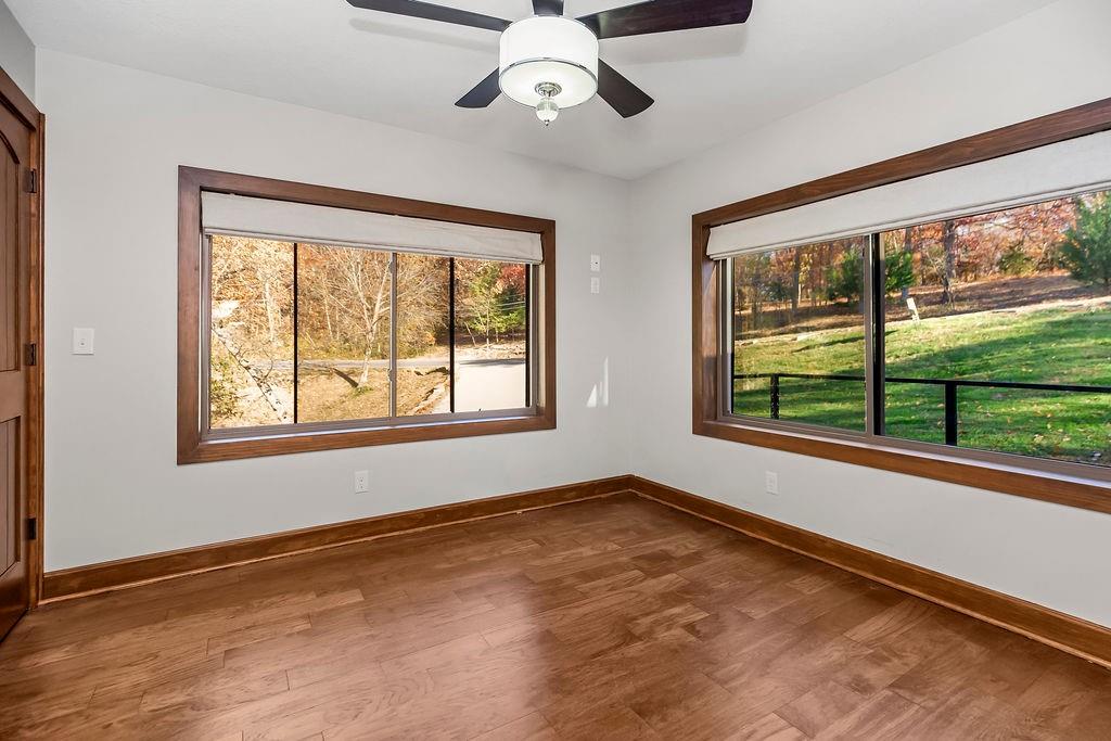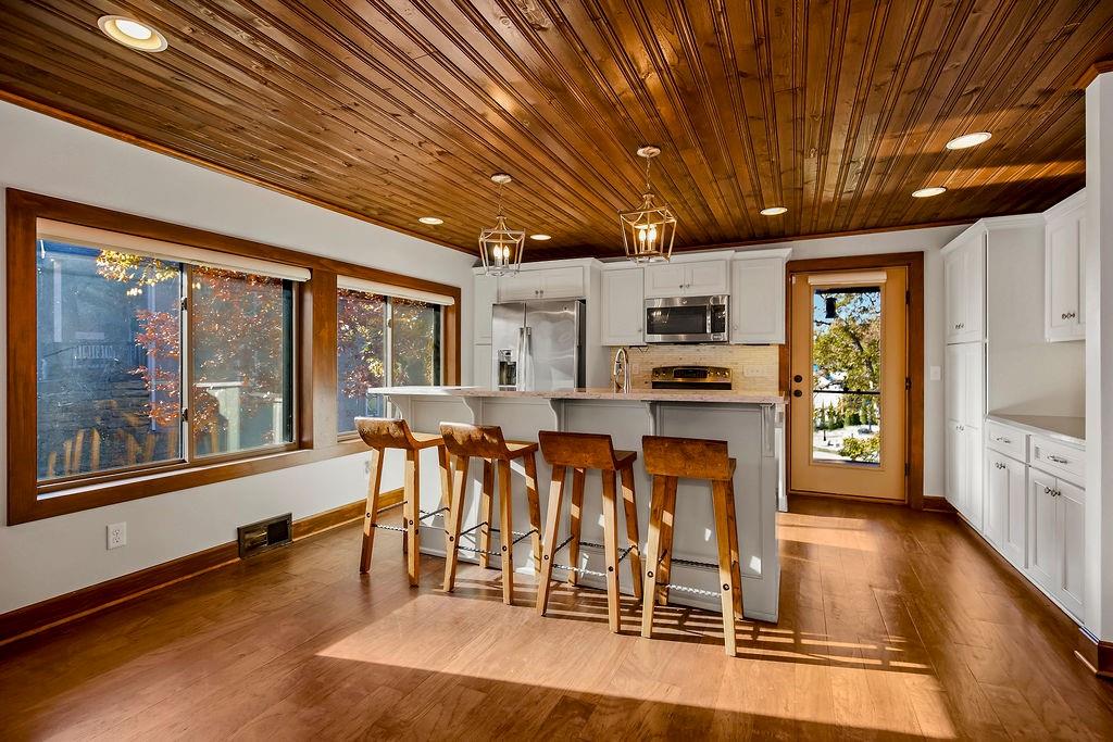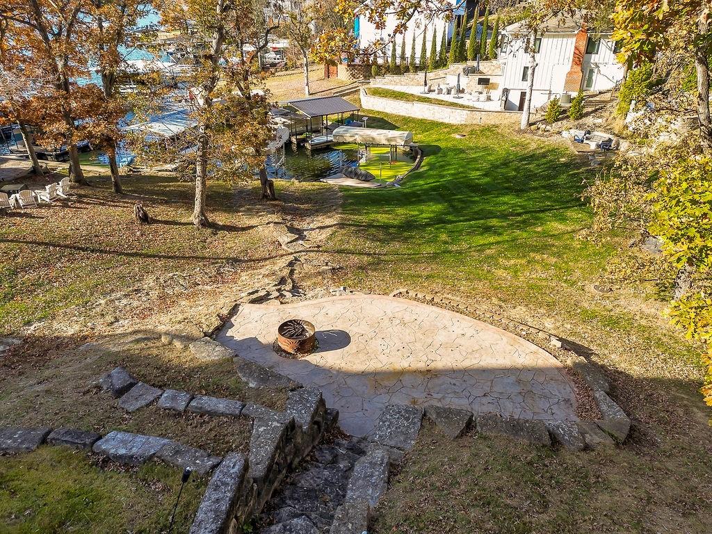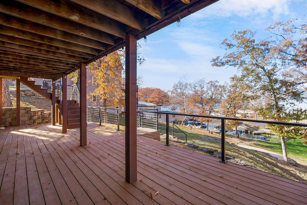 Lake Lotawana's one of a kind, coveted log cabin! Perched on three lots, nearly a 1/2 acre of gorgeous lakefront property with an expertly utilized interior space. The main level greets you with gorgeous, recently refinished 5" wide hardwood floors, a cozy living room that opens to an updated kitchen with quartz countertops and an island with seating. The open, wide staircase leads you to the lower level walk-out that has been completely remodeled in 2022. A modern gas fireplace warms the room along with a bar nook with a mini-fridge and bottle storage. Two spacious bedrooms with egress windows and a full bath are also located in the lower area. The finishes have been constructed with very high quality material and workmanship. The exterior is PERFECT for entertaining. Gorgeous sunset views from the two brand new decks, a firepit area and a private dock with an electric, covered shore station lift. A calm cove, just off the main channel, safer for playing in the water and less dock wear and tear. Improvements galore! Since 2021, HVAC, tankless water, windows, metal roof, flooring, fireplace, electric panel, sliding doors, and decks. Lifetime warrantied foundation piers installed for a strong, sturdy structure. Plenty of space to spread out and not hit elbows with your neighbors and parking for up to 7-8 vehicles, a rarity in Lake Lotawana. This sale includes three lake front lots, the possibilities are endless to build a garage or another home. Lake Lotawana is a sought-after location with Kansas City's only waterfront restaurant accessible by boat. Take your golf cart just a few miles away to the community park, tennis courts, restaurants, and coffee shop. There is always something to do in this community; fishing tournaments, ski, sailing , kayak and community events, and so much more.