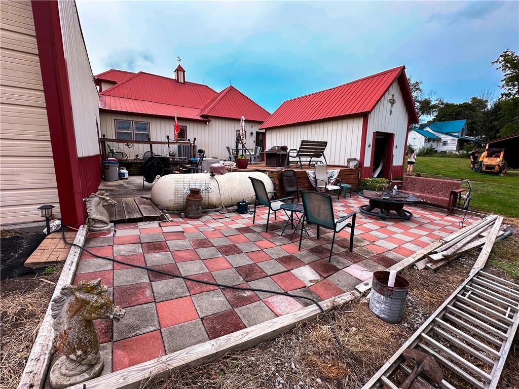 Relax on the deck on the front of this property and watch the sunset over the gently rolling county hills. Inside you will find a 3 bedroom, 1 full bath older remodeled home in the small country town of Fairport in Dekalb county. This home sits on 1.3 acres and the vacant lot of .37 acres to the north -also sells with the property. Inside you will find an older updated rustic, country feel with the primary bedroom downstairs and 2 bedrooms upstairs with a bonus room in the middle. The main level you will enjoy the kitchen, dining room, full bath, laundry room and another bonus room off the living room, great for a small office. From the kitchen walk out onto a large deck, it does need some replacement (deck), it leads to the large drive through garage and they used the small building on the deck as a summer kitchen where they canned foods in season. Looking off the back deck, they had horses on the property and several outbuildings to accommodate them. 3 wells are on the property as well as 220 electricity for camper hookups. It is a great retreat for the hunter and fisherman as work stations are located throughout the property. New HVAC and hot water heater earlier 2025. Appliances stay and are newer also. Garage is tall enough to pull a Semi into it. Property is selling As Is