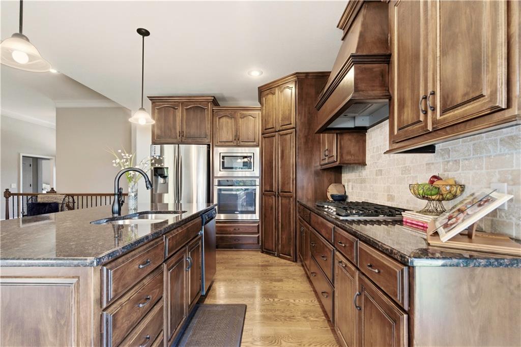 BOM - no fault to the sellers. This has all you need (plus extra) without the wait of a build job. Impeccably Maintained Reverse 1.5-Story Backing to Green Space! This stunning home has been lovingly cared for and offers a spacious, open layout that’s perfect for both everyday living and entertaining. Featuring 4 bedrooms — 2 on the main level and 2 on the lower level—you’ll enjoy flexibility and room to grow. With two living spaces and a bonus area just waiting for all the many uses you will dream of, you will find a perfect layout and one that has received many compliments. The main level boasts a bright, open kitchen complete with hardwood floors, a frig, a walk-in pantry, and convenient main-level laundry tucked behind the kitchen. The expansive great room flows beautifully into the kitchen and dining area, creating a warm and welcoming atmosphere. And, it's perfect for those who want to open up the shades and capture the green space and nature right in your backyard. You can enjoy this lovely view right from your living room, or soak in the view from the deck right off the kitchen. To top off this peaceful atmosphere, enjoy the see-through fireplace both inside and out. Perfect for entertaining as well. Downstairs, the finished basement is an entertainer's dream and includes a wet bar, rec room, and dedicated media room—ideal for movie nights or hosting parties and game nights. You can also use this bonus space for a kids play area as well. Also, off of the family room is another outside space. The covered patio is perfect for more outside enjoyment and added privacy and tranquility. Shall we say - 'great place to put your future hot tub?' ;) Plus, this home also has 2 small storage areas AND that third car garage, adding to the many great features. Call and set up your showing today.