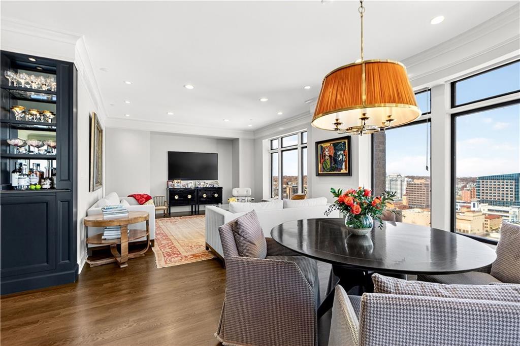 Experience elevated living in this beautifully reimagined 2-bedroom, 2.5-bath condominium perched on the 14th floor of the prestigious Alameda Towers. Every surface has been thoughtfully updated, showcasing impeccable craftsmanship and designer finishes throughout. The completely renovated kitchen is a chef’s dream! It features custom Bryne cabinetry and a one of a kind handcrafted center island featuring marble slab countertops. A 5-burner La Cornue range with double ovens anchors the space, complemented by additional Viking double ovens, making this a true delight for entertaining. The sleek butler’s pantry includes a new ice maker and wine fridge, and a reconfigured layout opens the kitchen to the spacious family room with a custom bar—perfect for entertaining. Fresh paint throughout, including a lacquered Monrose-painted entryway, enhances the sophisticated ambiance. The expansive dining room boasts a new statement light fixture, while the office is bright and functional with built-ins and large windows. The oversized primary suite offers hardwood floors, a completely renovated marble bathroom with mirrored vanities, abundant built-ins, and a massive custom closet. The secondary bedroom also features hardwoods and a newly refreshed en-suite bath with designer fabric walls. A stylish half bath adds both convenience and comfort—perfect for guests. Washer and dryer remain for convenience. Every inch of this residence has been modernized with quality and style—offering an exceptional blend of luxury, comfort, and location just steps from the Country Club Plaza.
