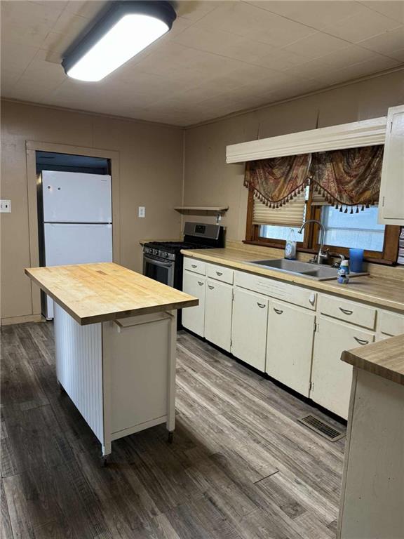 Starter home or investment opportunity with plenty of extras! This property offers a spacious yard and an impressive shop featuring four garage doors for convenient drive-thru access. The home includes a partial wraparound porch—perfect for relaxing evenings—and a single-car garage plus a small outbuilding for added storage. Inside, you’ll find a roomy kitchen and living area, 2 bedrooms, 1 bath, a large utility room, and an additional flex space ideal for a home office or potential third bedroom. The fenced backyard and generous six-lot setting give you room to grow, garden, or just enjoy the outdoors. So much potential packed into one property!