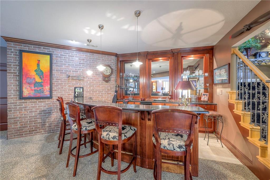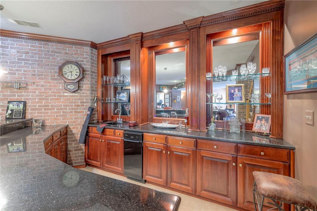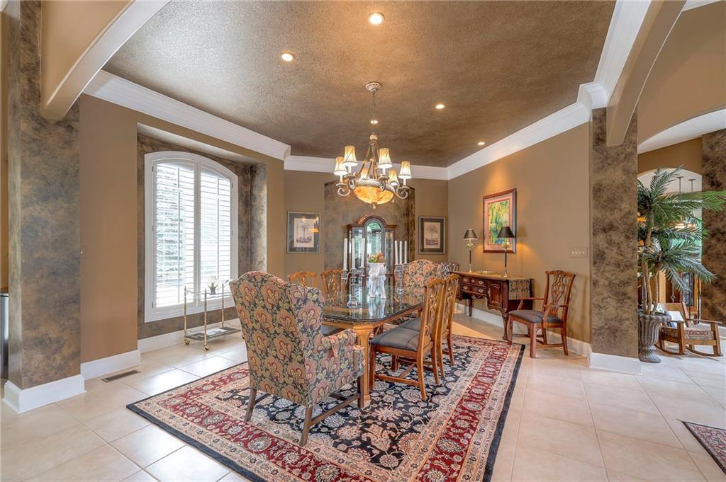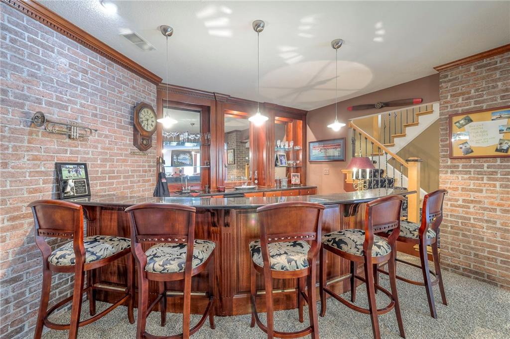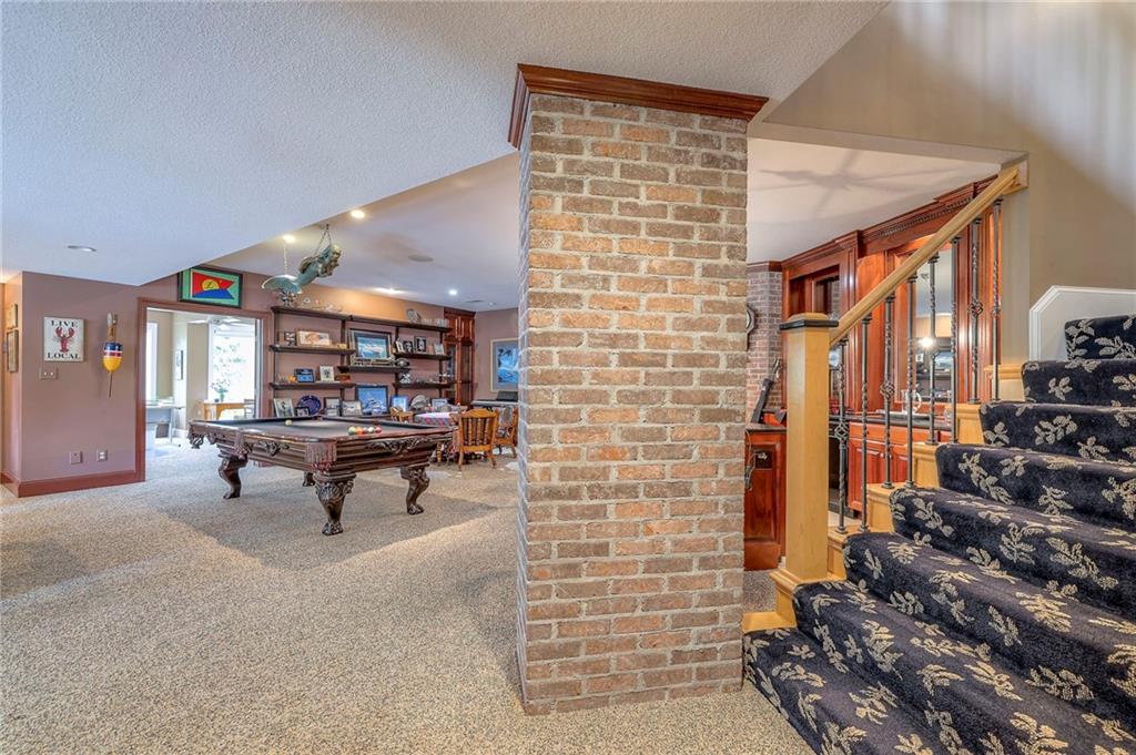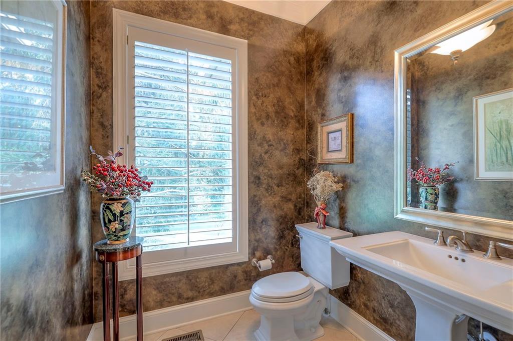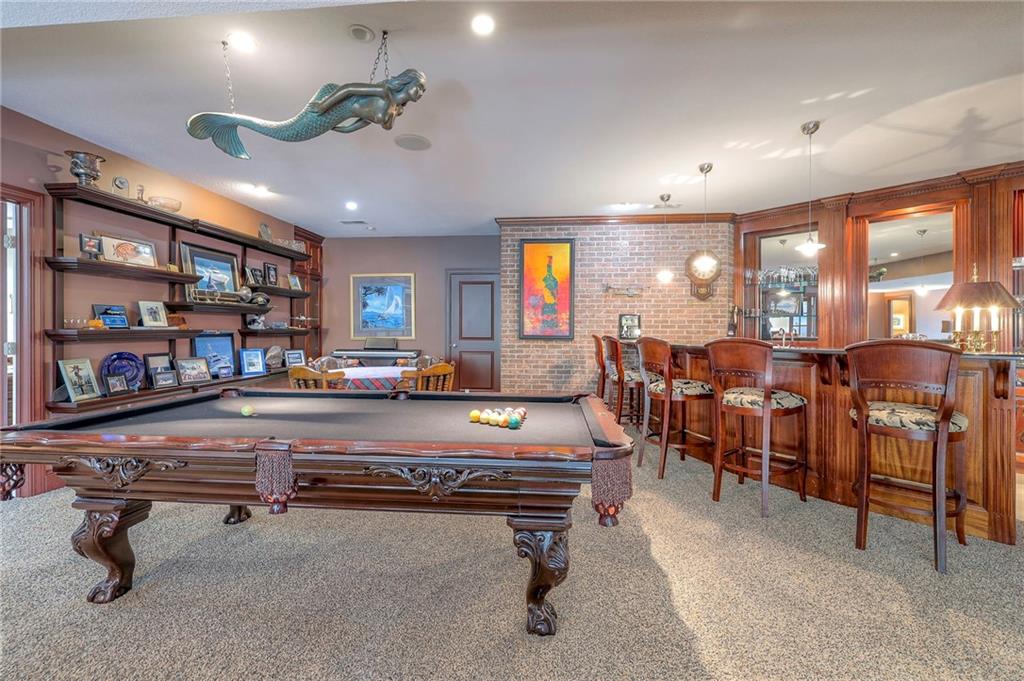 This stunning one-of-a-kind custom builder’s home sits on a private, beautifully landscaped lot surrounded by mature trees and natural views with a creek. Designed and built by the owner as a personal showpiece, every detail reflects craftsmanship and quality. Grand entryway with beautiful custom doors and built-ins. The formal dining and living rooms impress with 14- and 10-foot ceilings, faux-finished walls, and a fireplace with gas logs. The updated kitchen features custom curved cabinetry, quartz countertops, and high-end appliances including a Bosch dishwasher, double convection oven, warming drawer, Franke sink, and induction cooktop. A spacious laundry and hobby room just off the kitchen includes a sink and ample work area. Step out onto the deck to enjoy peaceful outdoor living and a private, wooded backdrop. The owners’ suite feels like you’re sleeping in a treehouse, offering tranquility and luxury with its grand ensuite bathroom. Enjoy the double vanity, walk-in shower with dual showerheads, whirlpool tub, and a large walk-in closet complete with a custom island and built-in dressers. The lower level is perfect for entertaining with a solid mahogany bar topped in granite, brick accents, and a game area with built-in pool table storage. Enjoy the cozy great room with surround sound and a brick fireplace with gas logs. Two spacious bedrooms each have private baths, and a fourth room—currently used as an office—has private exterior access, ideal for a home business. Walk out to the slate patio and firepit surrounded by professional landscaping, complete with irrigation, 21 mature pine trees, and 9 hardwoods. Additional features include custom plantation shutters, a grand circle driveway with cut stone front porch, 2x6 double wall construction, R45 walls and R45 in attic and an oversized three-car garage with sink and epoxy flooring. This exceptional property perfectly blends craftsmanship, privacy, and comfort in a truly one-of-a-kind setting.