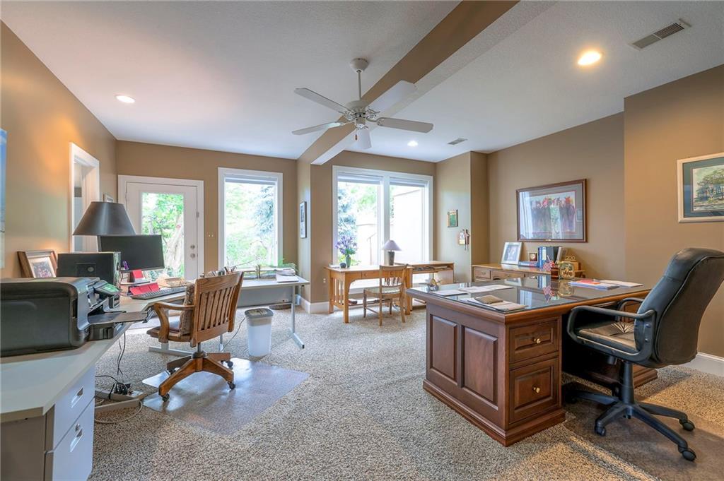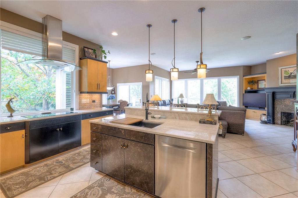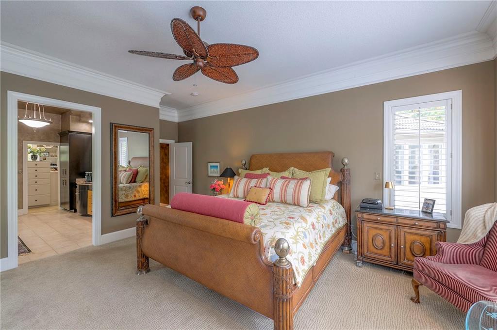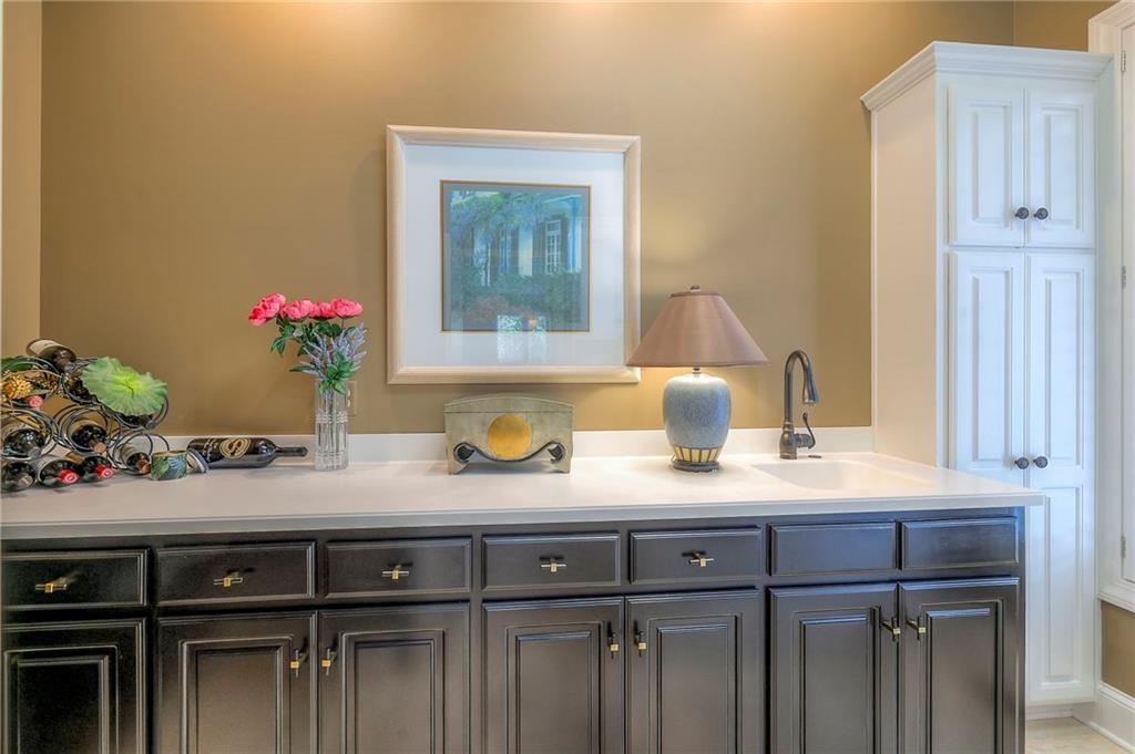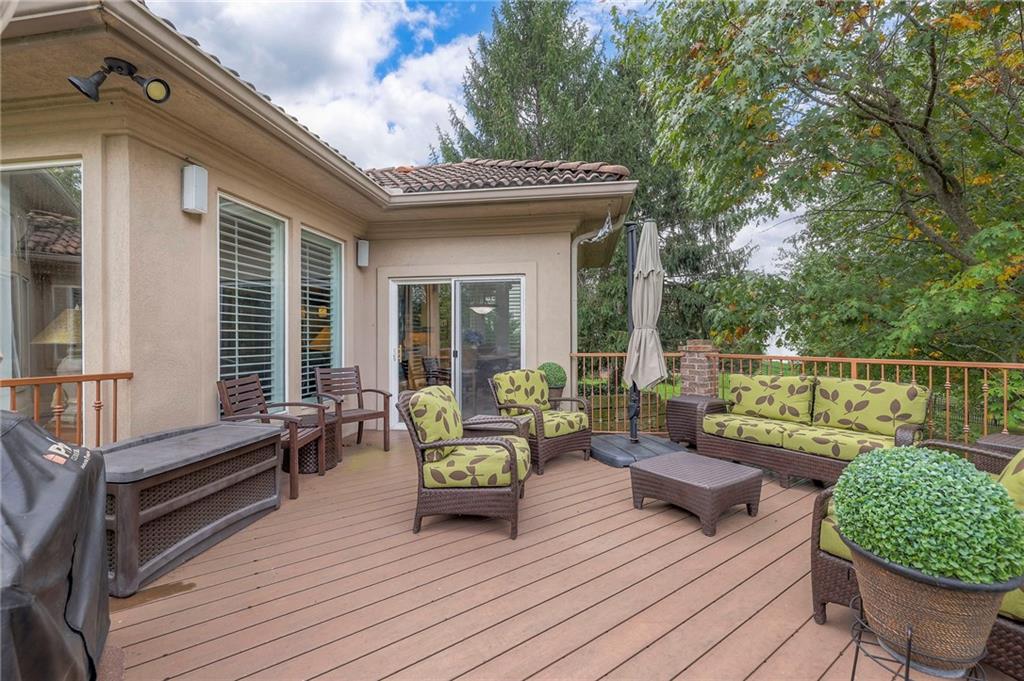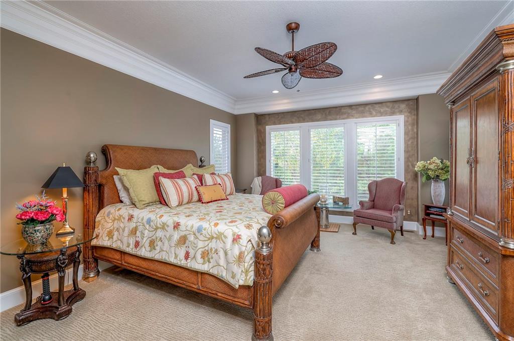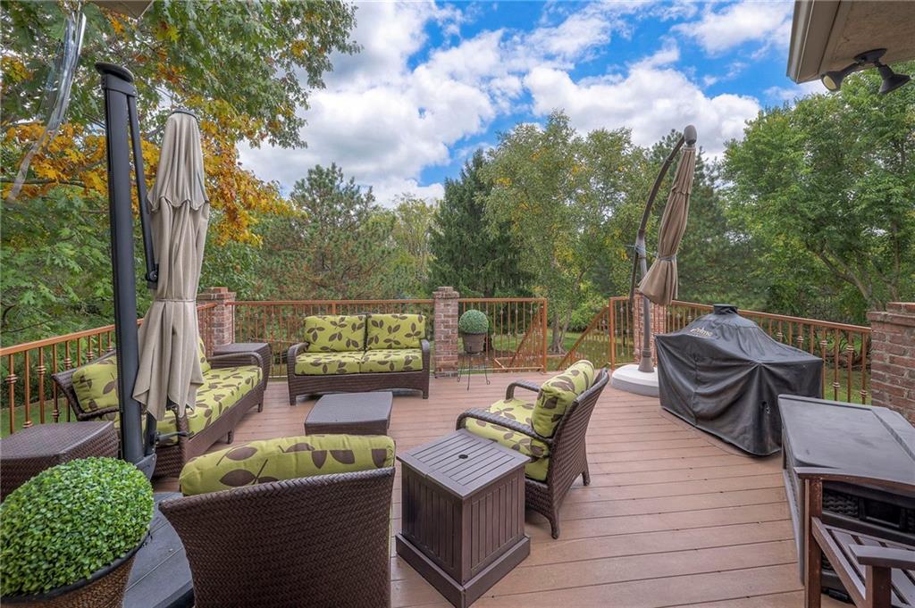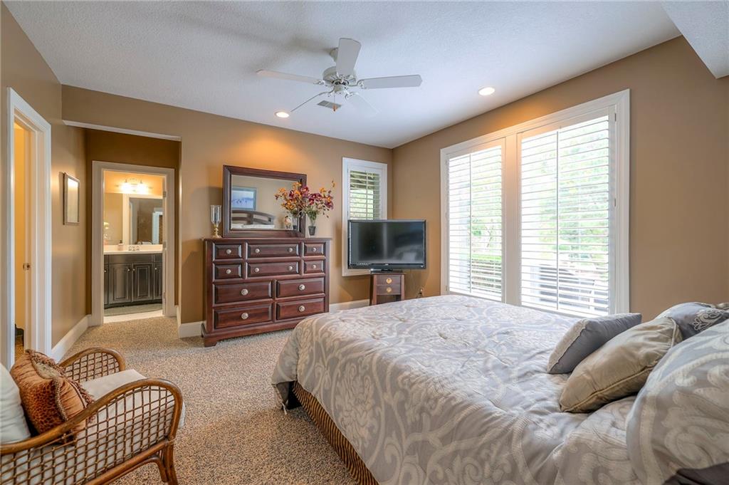 This stunning one-of-a-kind custom builder’s home sits on a private, beautifully landscaped lot surrounded by mature trees and natural views with a creek. Designed and built by the owner as a personal showpiece, every detail reflects craftsmanship and quality. Grand entryway with beautiful custom doors and built-ins. The formal dining and living rooms impress with 14- and 10-foot ceilings, faux-finished walls, and a fireplace with gas logs. The updated kitchen features custom curved cabinetry, quartz countertops, and high-end appliances including a Bosch dishwasher, double convection oven, warming drawer, Franke sink, and induction cooktop. A spacious laundry and hobby room just off the kitchen includes a sink and ample work area. Step out onto the deck to enjoy peaceful outdoor living and a private, wooded backdrop. The owners’ suite feels like you’re sleeping in a treehouse, offering tranquility and luxury with its grand ensuite bathroom. Enjoy the double vanity, walk-in shower with dual showerheads, whirlpool tub, and a large walk-in closet complete with a custom island and built-in dressers. The lower level is perfect for entertaining with a solid mahogany bar topped in granite, brick accents, and a game area with built-in pool table storage. Enjoy the cozy great room with surround sound and a brick fireplace with gas logs. Two spacious bedrooms each have private baths, and a fourth room—currently used as an office—has private exterior access, ideal for a home business. Walk out to the slate patio and firepit surrounded by professional landscaping, complete with irrigation, 21 mature pine trees, and 9 hardwoods. Additional features include custom plantation shutters, a grand circle driveway with cut stone front porch, 2x6 double wall construction, R45 walls and R45 in attic and an oversized three-car garage with sink and epoxy flooring. This exceptional property perfectly blends craftsmanship, privacy, and comfort in a truly one-of-a-kind setting.