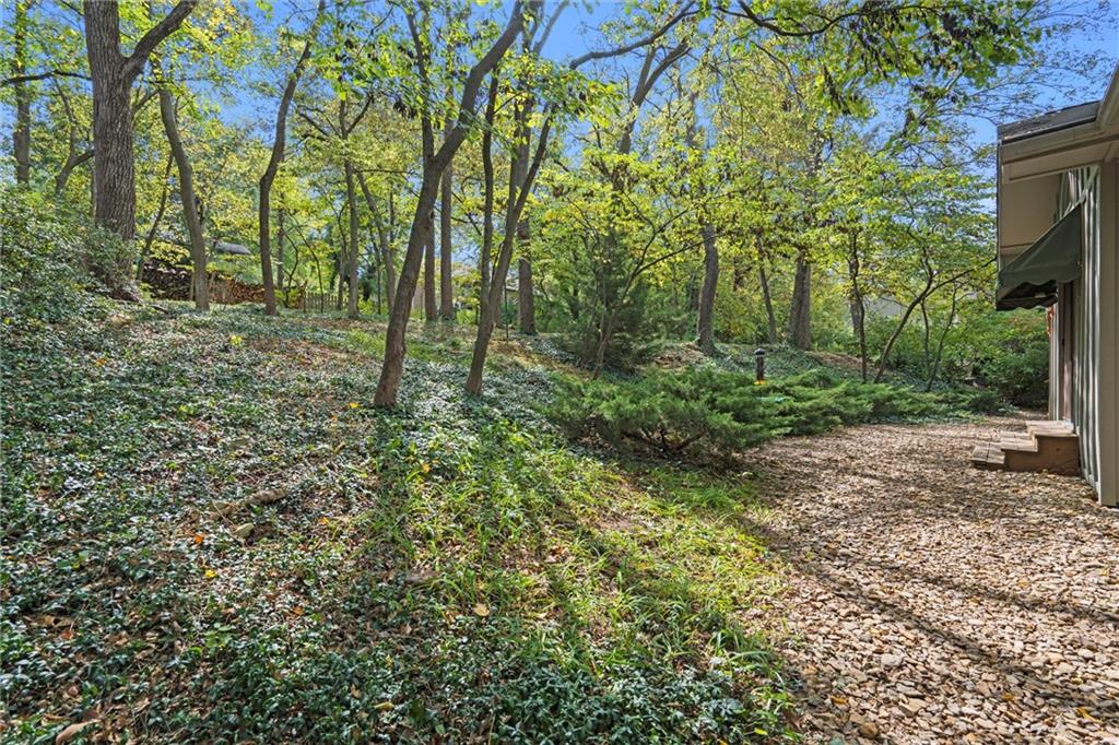 Welcome to this beautifully maintained one-owner ranch nestled in one of Lawrence’s most desirable neighborhoods. This thoughtfully cared-for 2-bedroom, 2-bath home offers easy one-level living surrounded by mature trees and peaceful, wooded views. Inside, you’ll find soaring ceilings and large picture windows that fill the home with natural light. The spacious living room features a brick fireplace with built-ins, while the adjoining dining area overlooks the private backyard. The kitchen retains its timeless wood cabinetry and offers a great layout with ample storage and counter space. Both bedrooms are generously sized, and the primary suite includes an en-suite bath and great closet space. Recent maintenance updates—including cleaned ductwork and attentive care—make this home move-in ready. Situated on a quiet street with a two-car garage and lush landscaping, this property perfectly balances comfort, convenience, and classic charm—all just minutes from KU, downtown Lawrence, and local parks.