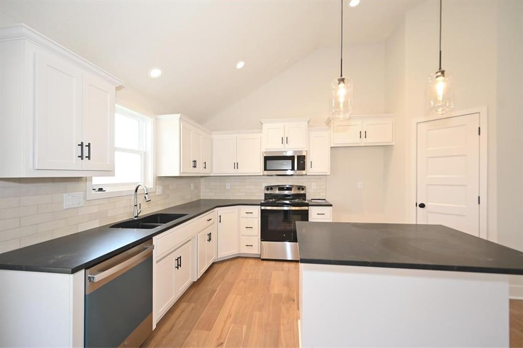 Stunning Custom Home with Modern Features and Inviting Spaces Welcome to your dream home! This exquisite property showcases an open floor plan, ideal for both entertaining and everyday living. The elegant kitchen boasts pristine white granite countertops, custom cabinets, and stainless steel appliances, all seamlessly flowing into the spacious living area centered around a beautiful fireplace. Step outside to discover a covered deck complete with a fan and light, perfect for enjoying serene views of the adjacent pasture. The rich feel of this home is accentuated by LVP throughout and vaulted ceilings enhancing the sense of space and light. The laundry room features stylish tile, while two generously-sized guest bedrooms offer plush carpeting, ceiling fans, and trey ceilings, creating a comfortable retreat for family and friends. The guest bath is tastefully designed, highlighting a tiled tub and a marble vanity that exudes luxury. Retreat to the master bedroom, a good-sized haven with carpet, a ceiling fan, and sophisticated trey ceilings. The walk-in master closet provides ample storage, while the en-suite master bath features elegant tile flooring, a double vanity with sleek black faucets, and a spacious tiled shower. The lower level invites you to enjoy a large fourth bedroom, complete with carpeting and a ceiling fan, alongside a substantial family room perfect for movie nights. The additional full bath boasts a tiled floor and a shower for convenience. Completing this remarkable home is an oversized three-car garage, providing plenty of space for vehicles and storage. The front of the house is adorned with beautiful stone, adding to the curb appeal with shutters to boost the look. Don’t miss the opportunity to make this luxurious yet inviting home your own!