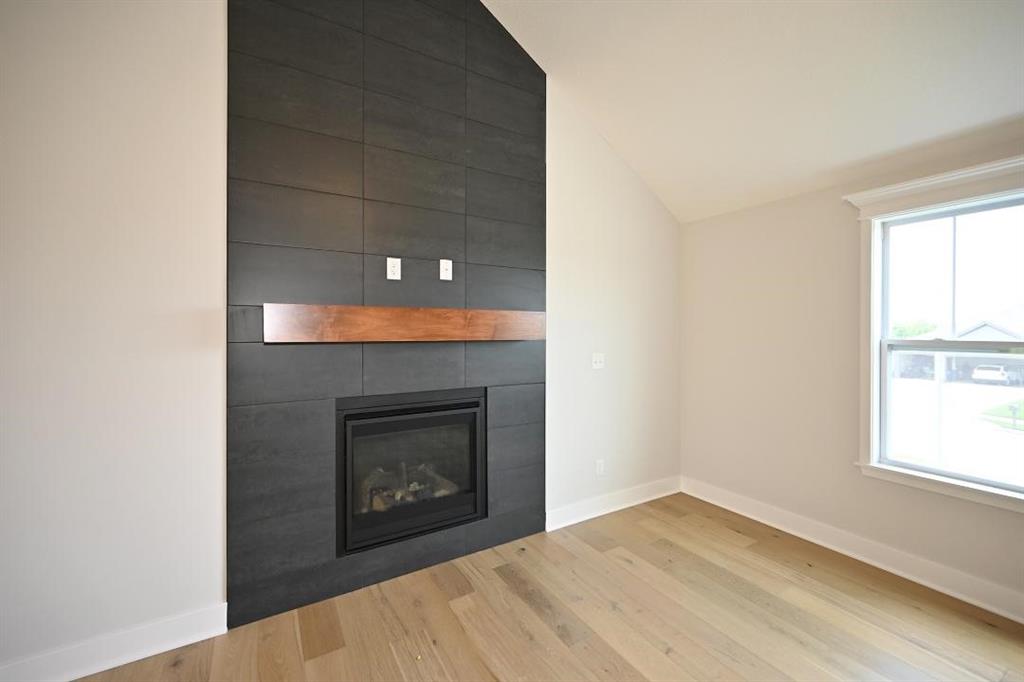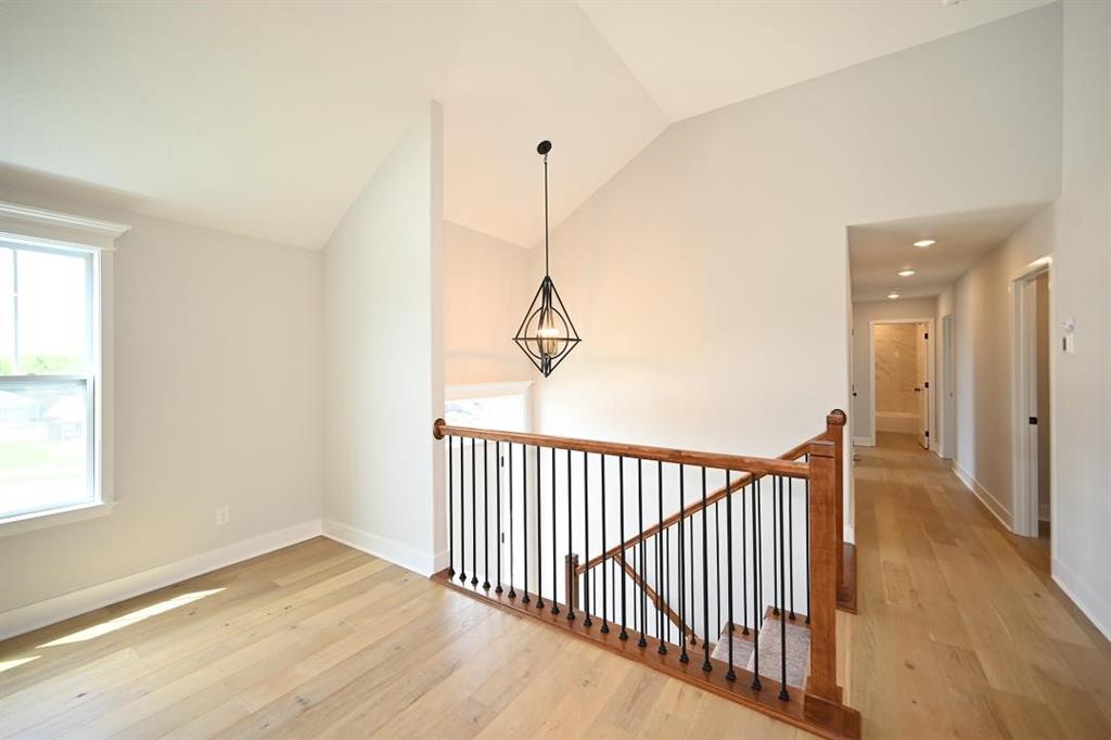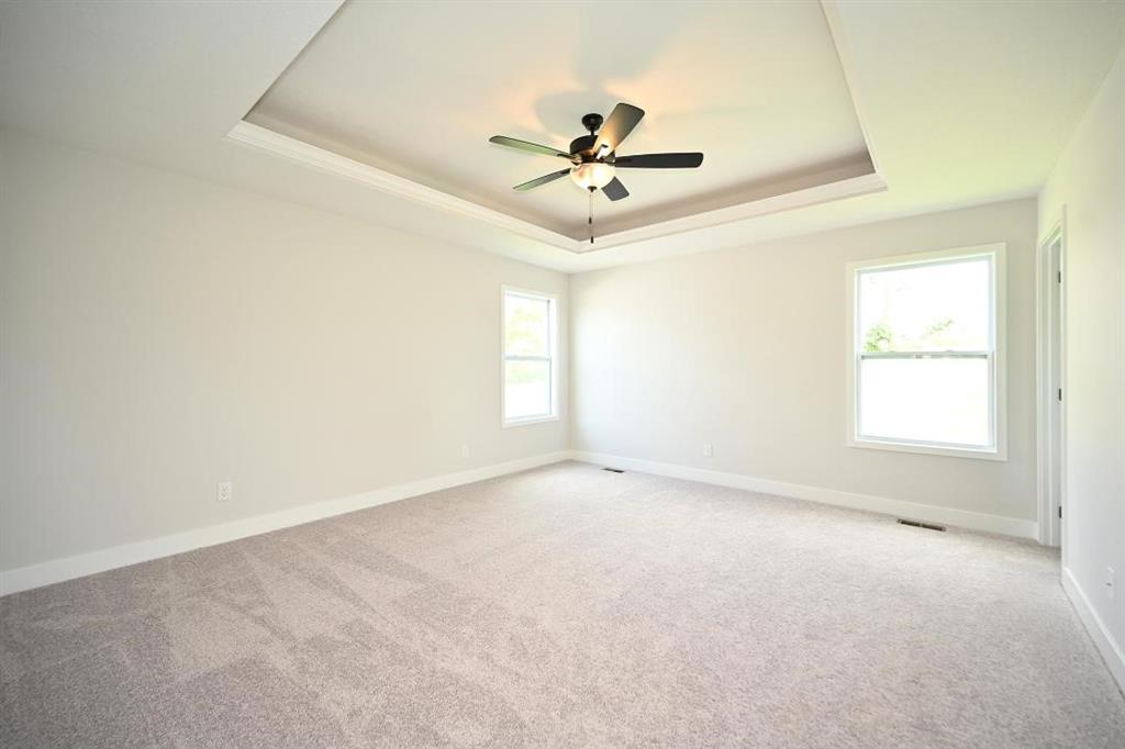 Stunning Custom Home with Modern Features and Inviting Spaces Welcome to your dream home! This exquisite property showcases an open floor plan, ideal for both entertaining and everyday living. The elegant kitchen boasts pristine white granite countertops, custom cabinets, and stainless steel appliances, all seamlessly flowing into the spacious living area centered around a beautiful fireplace. Step outside to discover a covered deck complete with a fan and light, perfect for enjoying serene views of the adjacent pasture. The rich feel of this home is accentuated by LVP throughout and vaulted ceilings enhancing the sense of space and light. The laundry room features stylish tile, while two generously-sized guest bedrooms offer plush carpeting, ceiling fans, and trey ceilings, creating a comfortable retreat for family and friends. The guest bath is tastefully designed, highlighting a tiled tub and a marble vanity that exudes luxury. Retreat to the master bedroom, a good-sized haven with carpet, a ceiling fan, and sophisticated trey ceilings. The walk-in master closet provides ample storage, while the en-suite master bath features elegant tile flooring, a double vanity with sleek black faucets, and a spacious tiled shower. The lower level invites you to enjoy a large fourth bedroom, complete with carpeting and a ceiling fan, alongside a substantial family room perfect for movie nights. The additional full bath boasts a tiled floor and a shower for convenience. Completing this remarkable home is an oversized three-car garage, providing plenty of space for vehicles and storage. The front of the house is adorned with beautiful stone, adding to the curb appeal with shutters to boost the look. Don’t miss the opportunity to make this luxurious yet inviting home your own! SIMULATED PHOTO'S NEW ONES COMING SOON - THE POND IS STOCKED FOR FISHING