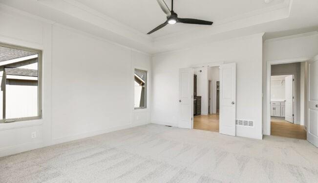 Wonderful "Jefferson II" Reverse 1.5-Story plan by Bickimer Homes on a walk-out lot! Home Features (2) bedrooms on the main level, open great room w/box-vault ceiling flooded with natural light with large windows overlooking the covered deck, Chef's kitchen, spacious pantry, breakfast room, mud room, 2nd full bath, gorgeous primary suite, laundry, 3-car garage & more. Kitchen cabinets upgraded to ceiling, 2nd bedroom/study on main floor has hardwood floors, custom cabinets next to fireplace, quartz countertops, upgraded tile, carpeting, shower doors, kitchen sink and hardware throughout. This is a walkout lower level w/covered deck & patio. There are 2-additional bedrooms & full bath in LL as well. Progress Pictures of actual home will become available. Photos are those of a previous finished model in another community. This home sits upon Lot #40 in The Enclave at Manchester Park. This wonderful community is walking distance to elementary school, has neighborhood pool, and is within very close proximity to everything else you'll need! (ECD: 300 Days) Photos are those of a previous model and not the actual home.