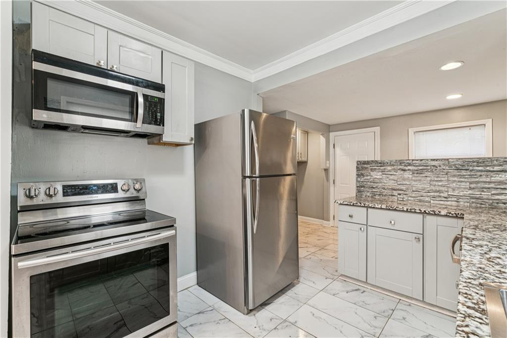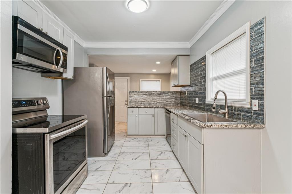 WELCOME HOME!! Just in time for Christmas or bring in the New Year in your new home! Move-In Ready! Fully Remodeled 3-Bedroom Charmer This beautifully updated 3-bedroom, 1-bath home offers the perfect blend of modern finishes and cozy charm. From the moment you arrive, the welcoming front porch sets the tone with its inviting character and curb appeal. Step inside to discover a completely remodeled kitchen featuring granite countertops, newer cabinets, gorgeous backsplash, and a convenient breakfast bar—ideal for casual meals or entertaining. The open-concept layout flows into a warm and inviting living area, complete with a modern electric-start fireplace that adds style and comfort. Upstairs, you'll find a private retreat-style bedroom, perfect as a primary bedroom, guest room, or dedicated home office. Just off the kitchen are washer/dryer hookups for added convenience, and the unfinished full basement provides plenty of storage space. Enjoy your evenings on the spacious back deck, perfect for outdoor dining and gatherings with friends and family. Additional highlights include: Fresh flooring, Updated lighting and fixtures. Whether you're a first-time homebuyer, downsizing, or looking for a smart investment property, this move-in ready gem checks all the boxes. Don’t miss your chance—schedule a showing today!