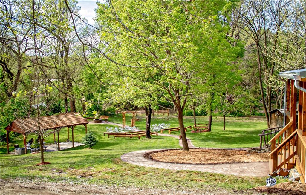 Welcome to the Crooked River Farm! This truly is a dream property for somebody who wants to own a rural wedding venue. Encompassing over 100 acres on the Crooked River, this award-winning venue boasts a level of character and rustic charm that puts it in a league of its own. The full appeal of the Missouri countryside is on display as you explore the property, from the peaceful riverfront setting with its fertile bottomland to the quaint cabin on the oak-covered hills. The diverse landscape hosts a wide range of wildlife viewing or hunting opportunities. The venue building is the jewel of the property. Crossing the walking bridge, you pass under an arbor and your eye is met with the picturesque scene of a rustic barn flanked by several mature trees. The term “rustic” sometimes implies poor craftsmanship, but that is not the case here. You’ll feel the care and attention to detail as you enter the building. Built primarily with rough-cut lumber sourced on-site, it’s easy to let your mind step back to a time when things were simple. Overlooking the outdoor wedding area from the covered porch makes you feel right at home and a homey farm cottage provides a comfortable overnight stay. As a bonus, a 4-bedroom 2.5 bath home is conveniently located on the property, turning your commute into an easy walk across the driveway. Additional income opportunities abound beyond the wedding venue, ranging from tillable acres, hay production, hunting lease, and plenty of room for expansion! The current owners have invested an enormous amount of effort to build something worth continuing but have also left room to add your own personal touches. Visit the Premier Land and Auction web site for more details and photos, there are just too many details to list here. Please do not enter the property without setting up a showing, which will be by appointment only as this is an operating business. Buyer to verify all acreage and tax information.