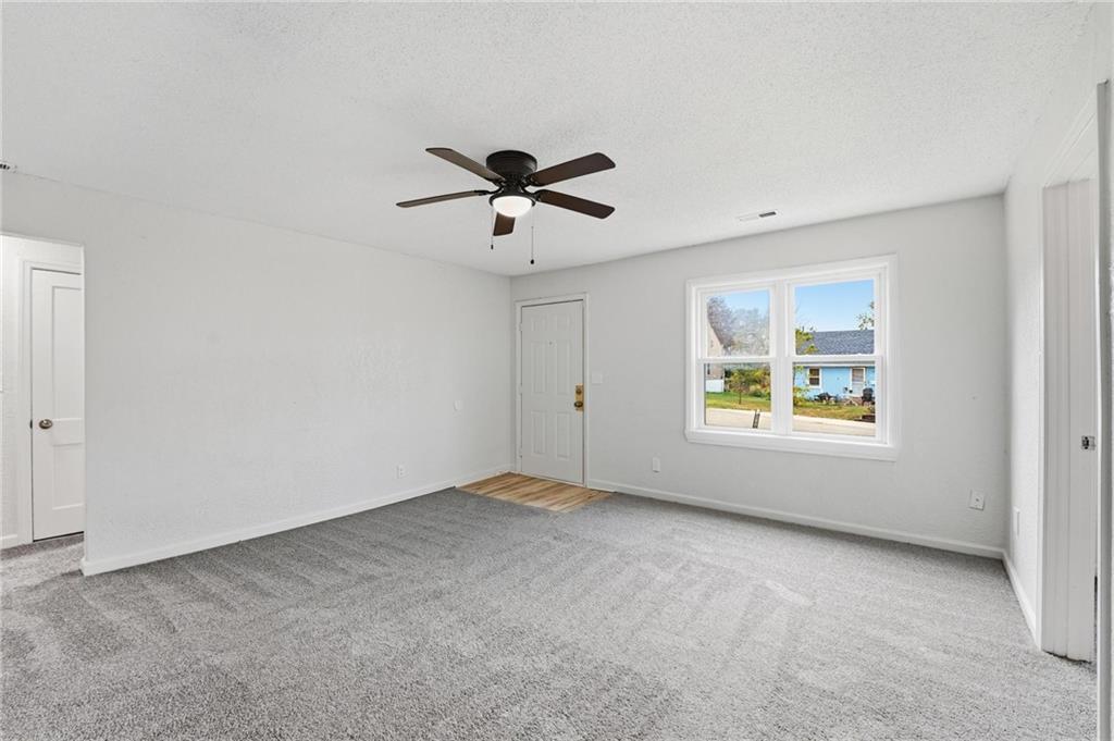 Welcome home to this cheerful ranch that blends fresh style with everyday practicality. Inside, you’ll find brand-new carpet and fresh interior paint throughout, including doors, giving every space a crisp, clean feel. The bright living room opens easily into the kitchen, where granite countertops, a stainless steel refrigerator, and tile flooring make cooking and gathering a breeze. A convenient peninsula bar provides extra counter space and a great spot for casual dining. The primary bedroom offers privacy with its own ensuite bath and walk-in closet, while the additional bedrooms are spacious and comfortable. Both bathrooms feature classic white subway tile for a timeless look. Outside, the home’s freshly painted front door adds a pop of color and charm. Enjoy the large lot with mature trees—plenty of room to relax or play. With a newer roof, easy highway access, and a street with no through traffic, this home combines convenience with peace of mind. Schedule your showing today!