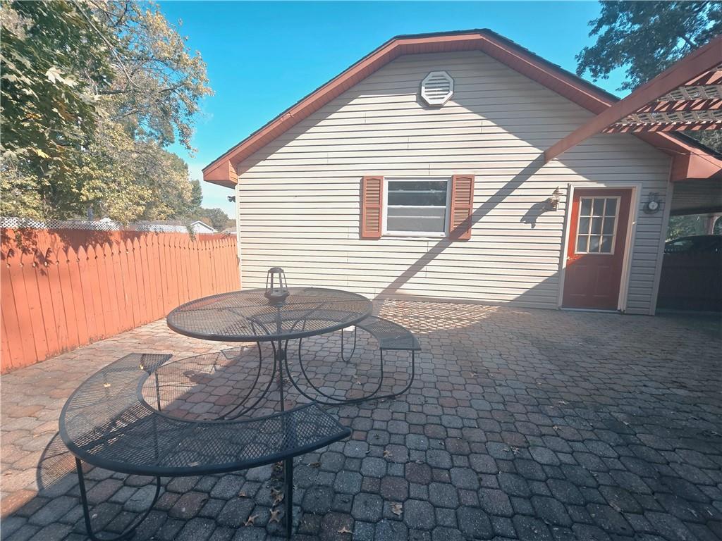 This cozy 3–4 bedroom, 1-bath home offers both comfort and flexibility. The main level features a warm and inviting layout with a spacious living room, dining room and kitchen that has new flooring. Upstairs you will find three bedrooms and on the main level there is an additional room that can serve as a fourth bedroom, family room, or flex space — perfect for whatever fits your lifestyle. Outside, you’ll love all the amenities this property has to offer! The detached two-car garage includes an additional bonus room, ideal for a home office, hobby room, gym, or studio. The large ?-acre lot provides plenty of room to enjoy the outdoors, with a beautiful brick patio perfect for entertaining, a covered front porch for relaxing mornings, and a privacy-fenced backyard that’s great for kids, pets, or peaceful evenings. Recent updates include new flooring, a new mini-split system, a 30,000 BTU supplemental heater and new water heater. An additional bonus are the insulated windows, and durable vinyl siding for low-maintenance living. Tucked away in a quiet neighborhood yet conveniently located, it is a wonderful place to call home