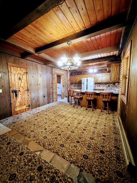 Don’t miss the chance to experience this slice of heaven! This 6-acre property offers the perfect blend of peaceful country living with convenient access to city amenities. Located just 4 miles north of Warrensburg, you’re minutes from Highway 50 and only 8 miles to I-70. This craftsman home (new roof and gutters 2025) features 3 oversized garage bays that can accommodate an RV, boat and trailer. The fourth garage is perfect for everyday use with built-in shelving for storage and organization. A concrete storm shelter with shelving is conveniently located off the attached garage, ideal for storing paint or garden tools. Woodworkers and hobbyists will love the dedicated shop area located between the garages, designed to handle projects of any size. Dual wooden front porches welcome you with breathtaking views of the fully stocked lake with its own island, mature trees, and a beautifully landscaped yard filled with ornate shrubs and perennial flowers. This private, serene setting is enhanced by gentle breezes and birdsong. With no HOA or city restrictions, buyers may keep livestock, expand the home, or customize the land. The home offers three levels of living space (with central vac sweeping system), two wood-burning fireplaces, and forced-air heat that assists baseboard heating throughout. Two spacious family rooms provide flexible living options, one featuring a soaring vaulted ceiling with exposed beams—ideal for entertaining or home office. The primary suite includes walk-in closets, while the main level boasts an open-concept kitchen and dining area with custom cabinetry and breakfast bar. A half-cut log staircase leads to the upper level bedrooms, a large storage closet, and a cozy reading nook. Exposed beams and custom Craftsman details throughout create a warm, one-of-a-kind country retreat. Ideal for family living, projects, livestock, or peaceful retirement—come breathe in the fresh air and enjoy tranquil lake living at its finest.