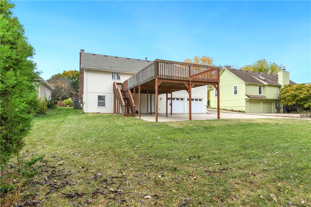 ***Back on the market - NO fault of seller! Investors cancelled right before closing *** Significant price improvement -schedule today before it's gone! Welcome home!! Here's the perfect property in a great location in Lee's Summit you've been looking for! Raised ranch with some unique features and updates you'll love! There's plenty of space for your visitors to park with an expanded deck with 3 carports underneath and 2 car garage in back. For easy access and few steps, the front circular drive is a great addition. Upstairs, you'll find a spacious kitchen, laundry, living and dining areas with 3 bedrooms and 2 baths. Enjoy the living room fireplace for cozy, colder evenings and coffee or meals on the deck during the warm months! Downstairs, an additional bathroom, non-conforming bedroom (with fireplace), and living room provide a separate living space, complete with a walkout to the backyard with private greenspace and direct access to the spacious garage (with HVAC). Newly repainted, new flooring, added deck support and a one year old roof with transferable warranty make this raised ranch move-in ready just in time for you to move in by the holidays and make this house your home!