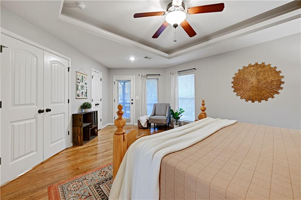 Charming Craftsman-style 2-story home featuring 4 spacious bedrooms, 3.5 baths, and a finished basement! Recent updates include a new roof plus HVAC & most kitchen appliances replaced in 2022! The inviting hearth room offers built-in shelving and a see-through fireplace shared with the great room, perfect for cozy evenings. Enjoy thoughtful touches throughout: window/storage seats in two bedrooms, a functional mudroom nook, vaulted ceilings, beautiful hardwood floors, and plush carpet. The private master suite boasts its own deck for relaxing mornings. The finished lower level includes a full bath and abundant storage space. The kitchen is equipped with stainless steel appliances and a walk-in pantry. Step outside to a fenced backyard with a sprinkler system, patio, and room to entertain. Don’t miss this move-in-ready gem!