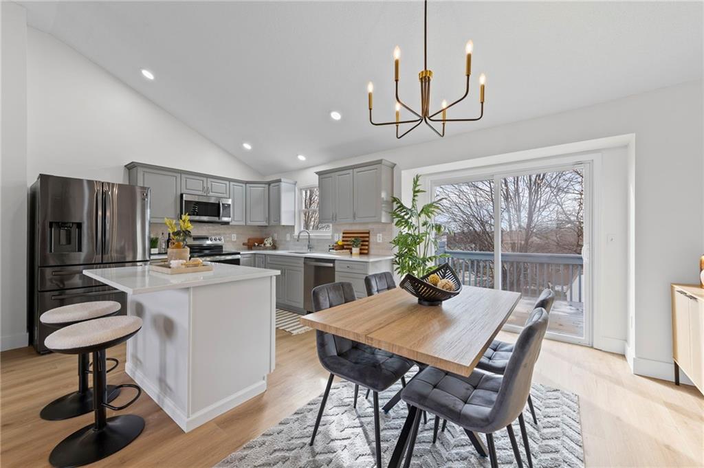 This beautifully updated 3-bedroom, 2-bath home offers 1,686 square feet of modern comfort in the desirable Line Creek Meadows subdivision. The bright and open floor plan features a fully updated kitchen with freshly painted cabinetry, quartz countertops, stainless steel appliances, and a brand-new center island designed for everyday living and entertaining. The adjoining dining area opens through sliding glass doors to a spacious deck, creating an ideal indoor–outdoor flow. The inviting family room includes a gas fireplace that serves as a warm focal point for the main living space. The primary bedroom offers a private, updated bath with a new vanity, new flooring, a beautifully tiled shower, and modern lighting. The main bathroom has also been refreshed with new flooring, updated lighting, and contemporary finishes. New flooring is found throughout the home, and the exterior has been freshly painted to enhance curb appeal. The walkout basement features new luxury vinyl plank flooring, an updated laundry area with the washer and dryer included, and direct access to a second deck that overlooks the backyard. A small storage shed is located at the rear of the property, offering additional convenience for tools and outdoor equipment. This home is located in the Platte County R-III School District and is served by Barry Elementary School, Platte Purchase Middle School, and Platte County High School. Buyers are encouraged to verify school boundaries with the district. Convenient access to major highways including 152, I-29, and MO-9 makes commuting easy, and nearby attractions include Line Creek Park and Ice Arena, Line Creek Trail, the Barry Road retail corridor, and the Zona Rosa shopping and entertainment district. With modern updates, multiple outdoor living spaces, and a prime Northland location, this move-in-ready home is ready to impress. Schedule your showing today.