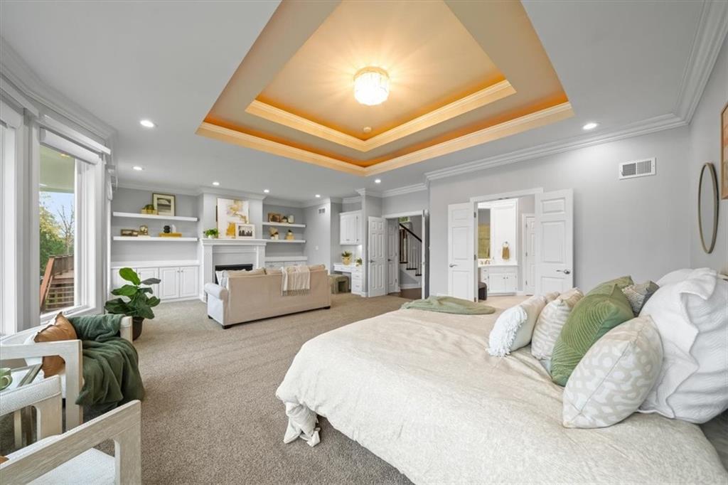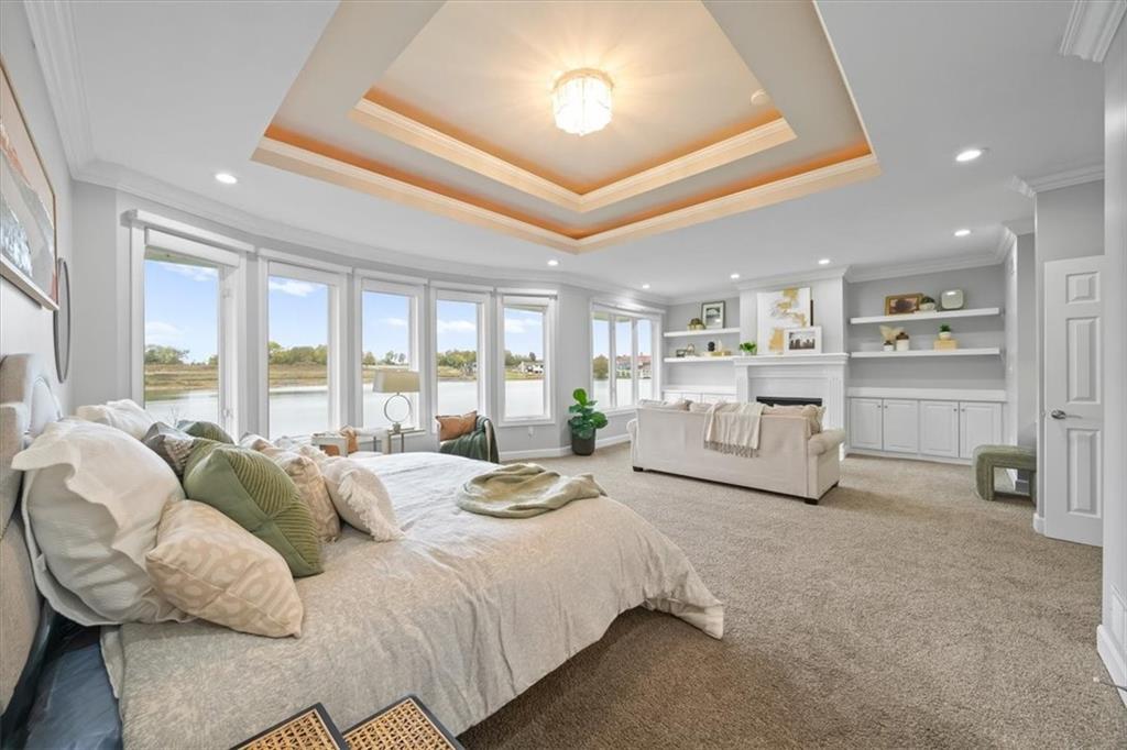 Spend New Years in this beautiful Home! PRICED BELOW APPRAISED VALUE, this home is more than a rare find- A glowing lake at sunset becomes the backdrop of everyday life here—captured through walls of windows in the great room, kitchen, and primary suite. Every space was designed with intention, framing the water as the home’s most breathtaking feature. Set on two generous lots at the end of a quiet cul-de-sac, this property lives like a private lakeside retreat with over 300 feet of pristine shoreline. The jewel-box kitchen sparkles with a mother-of-pearl backsplash, custom soft-close cabinetry, and expansive island. Open living and dining spaces make entertaining effortless, with a cozy fireplace, automated Lutron shades, and seamless flow to the water’s edge. The primary suite offers a true sanctuary—complete with its own fireplace, serene lake views, and a spa-like bath. The walkout level adapts beautifully to the way you live, offering its own kitchen area and flexible space for movie nights, an art studio, a home gym, or a private in-law suite. And just steps away, neighborhood amenities—pool, tennis, basketball—make lake life feel even more complete. Truely an exceptional opportunity to experience lake living at its most elevated, elegant, and deeply peaceful.