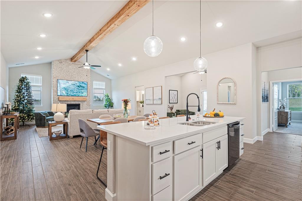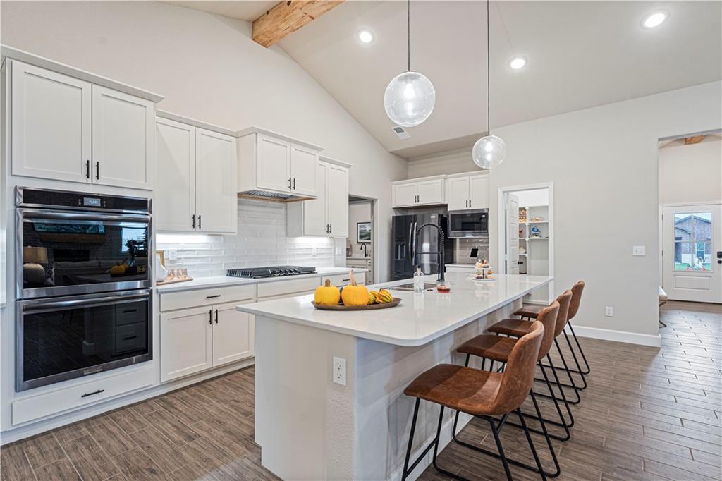 This 4 bedroom, 3 bathroom new home features an inviting covered front porch with tall arches and a striking stone and brick exterior. Inside the home is an open-concept living space with vaulted ceilings accented with exposed beams. Great for entertaining and spending time with family, this grand kitchen features black stainless steel appliances, a large kitchen island, a butler's pantry, and more. The master suite includes a luxurious master bathroom with a glass shower, a free-standing tub, and a walk-in closet with storage and counter space. Even more...an interior bonus room, a brick fireplace, an extended utility room, built-in desk space, and window treatments!Arise Homes use real brick and stone for the exterior, providing easy maintenance for years to come! Stonebridge Trails is a Rodrock Community. Amenity package provides a wonderful lifestyle in an amazing location with 4 Pools, 2 Club Houses, Work Out Equipment, Sport Courts and Walking Trails! Approximately 0.3 mi from Heritage Park, a 1,234-acre recreational hub with a lake, dog park, athletic fields, disc golf course, softball, football, soccer fields, and an 18-hole golf course with driving range. Schools are nearby, including Prairie Creek Elementary (~0.6 mi), Woodland Spring Middle (~1.0 mi), and Spring Hill High (~5.5 mi). Daily conveniences include Natural Grocers (~4.2 mi), Price Chopper (~4.5 mi), and local coffee spots (~1–1.2 mi). Estimated completion March 2026. Photos are from previous build, not actual home. Taxes, square footage, and room dimensions are estimated – Buyer or Buyer Agent to verify.