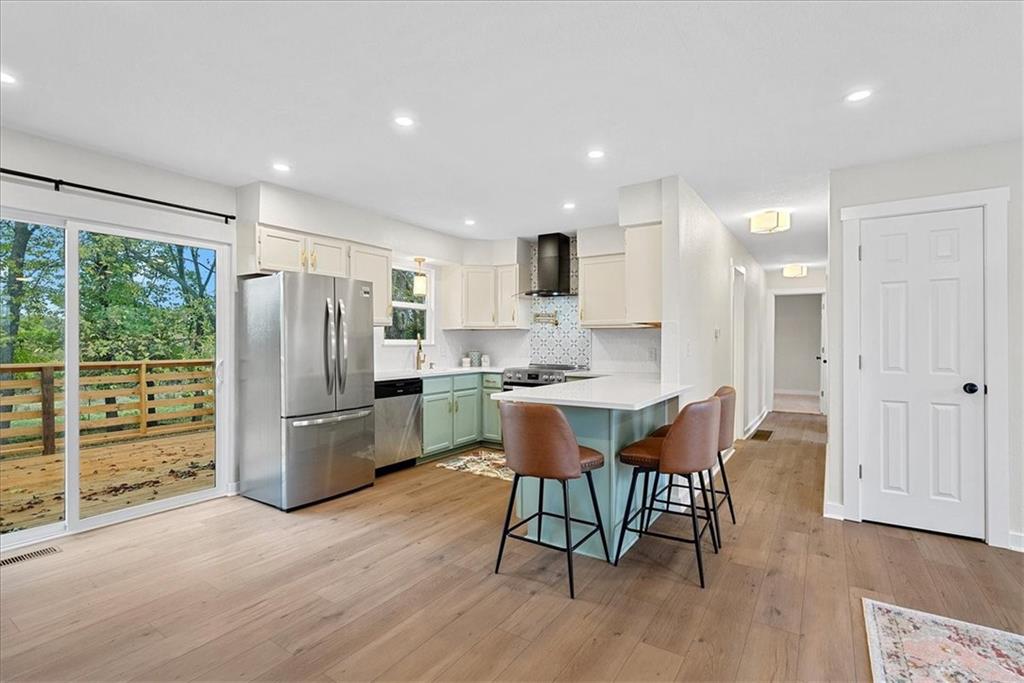 This home is in the community of Linn Valley Lakes. A wonderful place for a summer home or permanent residence. This home has been completely remodeled, featuring new flooring, windows, utilities, and kitchen appliances, along with a primary bedroom that includes its own double-sink en-suite and walk-in closet. Enjoy the main level laundry and mudroom conveniently located off the kitchen and 2-car attached garage. The backyard is quiet, private, and backs up to open cattle land, with an occasional visit from the cattle, you definitely know you're in the country. This gated lake neighborhood offers fantastic amenities for residents to enjoy, including a sparkling pool, clubhouse, playgrounds, and beach areas. Additional highlights include an impressive 18-hole golf course, onsite restaurants, tennis courts, and a frisbee golf course, several ponds, and a main lake for boating, fishing, paddleboarding, and swimming. This home is beautifully remodeled and ready for someone to enjoy all that this community has to offer.