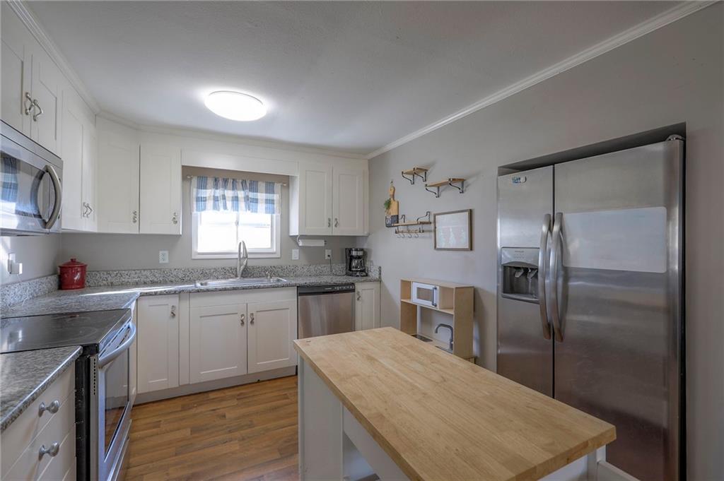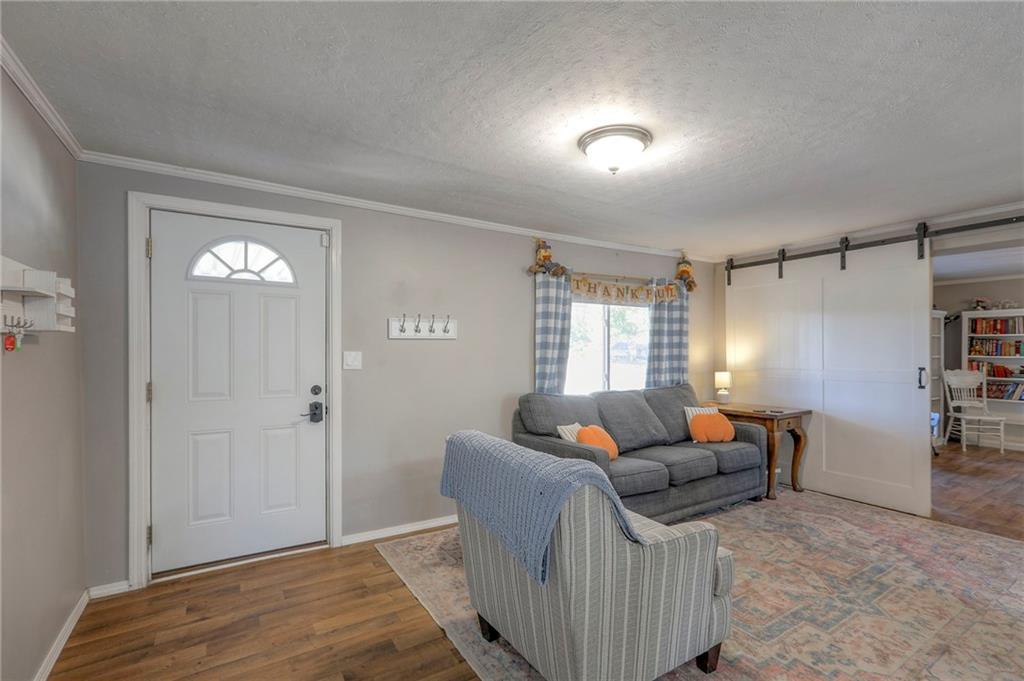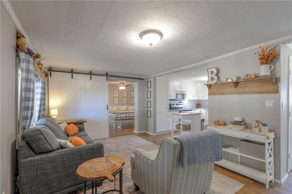 Experience the perfect blend of country tranquility and modern convenience with this beautifully renovated home. Situated on almost half an acre and backing to mature woods, this property offers both privacy and easy access to nearby amenities. This updated home backs to woods for added privacy. Step inside to find a bright, open floor plan featuring neutral décor and durable Luxury Vinyl Plank flooring throughout. The main level offers a spacious dining area and inviting living room, separated by a stylish barn door for added character. The updated kitchen has abundant white cabinetry, a pantry, and stainless steel appliances — perfect for everyday living or entertaining. Two bedrooms and two full baths are located on the main floor, while the upper-level bedroom can easily serve as a private primary suite complete with a walk-in closet. Enjoy outdoor living at its best — relax on the large covered front porch or host gatherings on the back patio, complete with a built-in stone gas fire pit and gas line ready for a grill or outdoor kitchen.