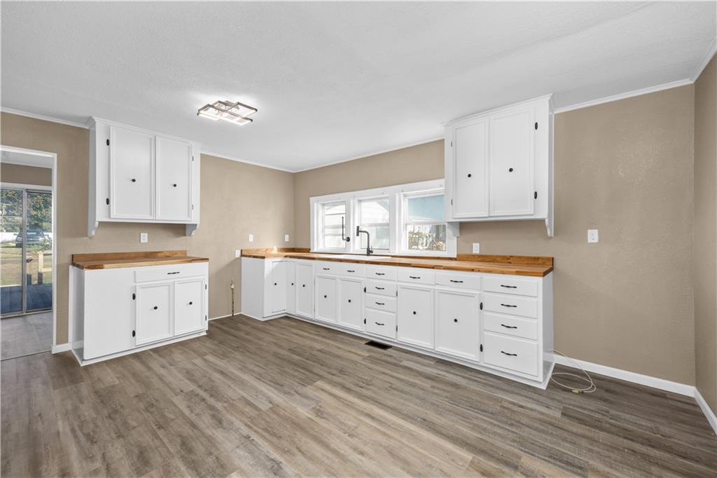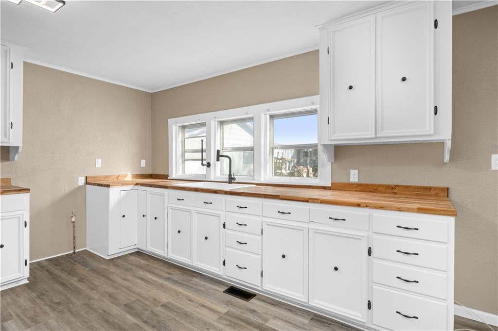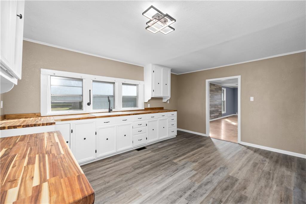 This beautifully updated 3-bedroom, 2-bathroom home sits on the edge of town and is packed with modern upgrades and charm. Step inside to a spacious, long living room that flows into an open kitchen featuring butcher block countertops and stylish finishes. A large utility room adds convenience and functionality for everyday living. The master bedroom offers privacy and comfort with its own personal bathroom — complete with a stunning new walk-in shower. Throughout the home, you’ll find new fixtures, fresh paint inside and out, new walls, updated wiring, and new plumbing — giving it a fresh, move-in-ready feel from top to bottom. Outside, the home features cute curb appeal, a back deck perfect for relaxing, and a good-sized yard for outdoor enjoyment. The large detached garage is heated and provides plenty of space for parking, storage, or hobbies. With all the updates already done and the modern touches throughout, this Neodesha home is the perfect blend of style, comfort, and convenience!