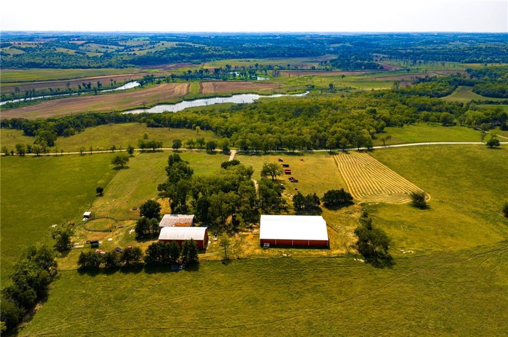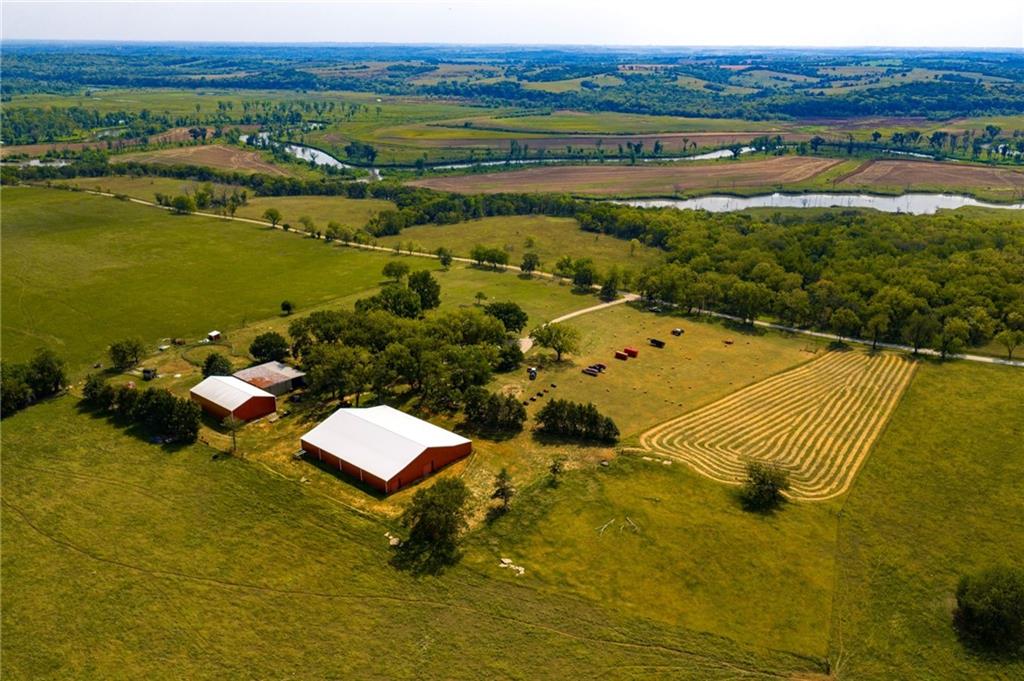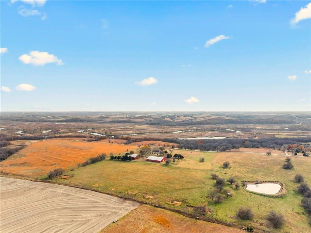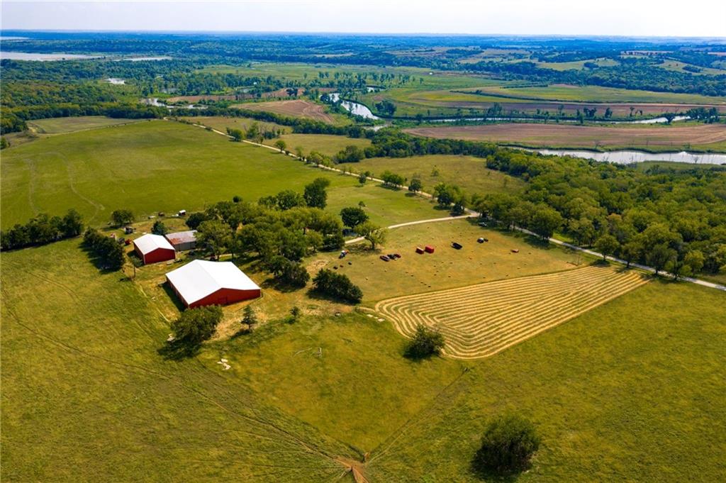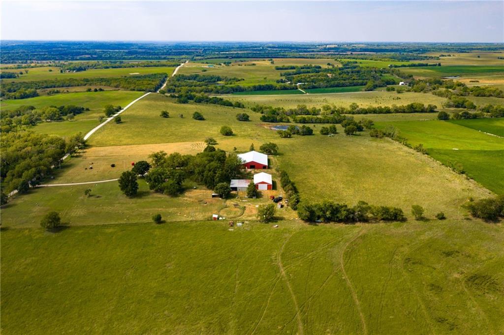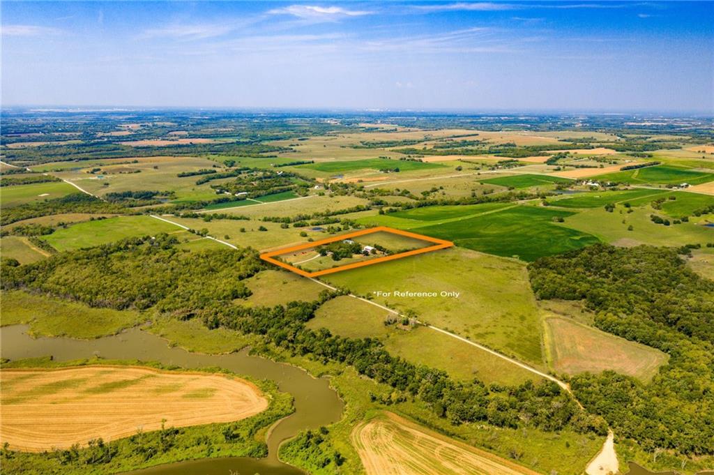 From the intersection of 6th St (40 Hwy) & the K10 Bypass, go west 2 miles to N 1600 Rd (Stull Rd) and turn left (west), go 4.6 miles to E 250 Rd (1023) and turn left (south), go 3.5 miles to N 1250 Rd (458) and turn right (west), go 1.4 miles to E 100 Rd and follow the curve to the left (south). Continue south for 1 mile, then turn left (east) on N 1150 Road. Continue to the property on the north side of the road. Watch for signs.