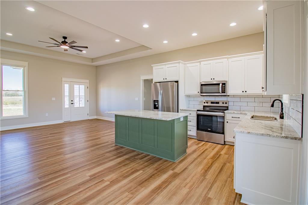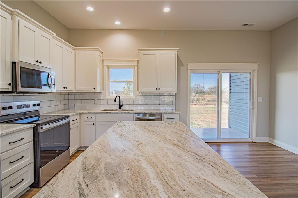 Great newer home on over 4 acres with lots of room to grow. Nice open floorplan with the kitchen island overlooking the great room and dining room. Cabinets are painted with granite countertops and also feature a tile backsplash. Flooring is LVP in the living/dining, kitchen areas, and entry with carpet in the bedrooms. There is also a covered front and rear porch with a two car garage. Exterior has vinyl siding and stone accents on the front. *A storm shelter can be installed within the garage, if not having a basement is a concern. The entire area above the garage can be outfitted for additional storage. Seller is owner/agent. Photos to be added soon!