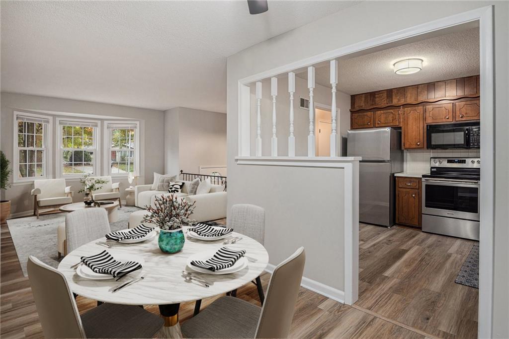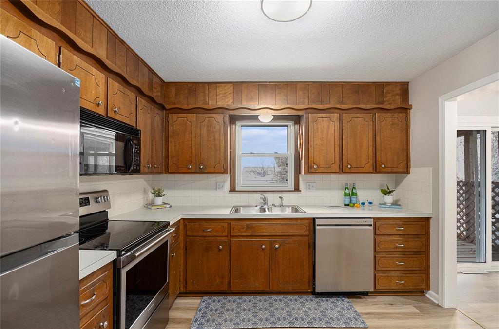 This move-in-ready Split-Entry home features numerous updates, including new luxury vinyl flooring and plush carpet throughout, fresh interior paint, a new furnace and air conditioner, and updated bathrooms! Step inside to an open, light-filled Living Room that flows into a Formal Dining space—perfect for entertaining! The Kitchen includes a built-in microwave, refrigerator, newer dishwasher and stove, plus room for an island or cozy breakfast table. The Primary Suite offers a new shower insert, updated vanity, and plenty of natural light. Two additional Bedrooms complete the Main Level. Downstairs, enjoy a spacious Family Room with daylight windows, a beautiful fireplace, and direct walkout access to the Backyard. Outside, you’ll find low-maintenance brick and vinyl siding, vinyl windows, a fenced backyard, storage shed, and covered deck and patio spaces—ideal for outdoor living! Centrally located near great shopping, dining, and highway access!