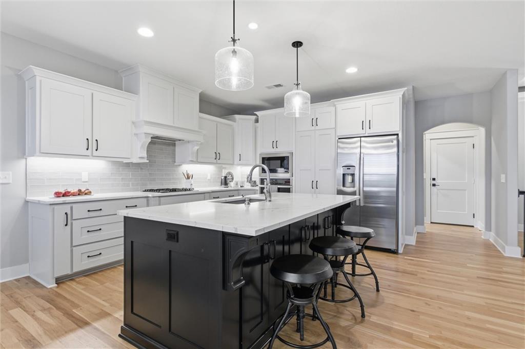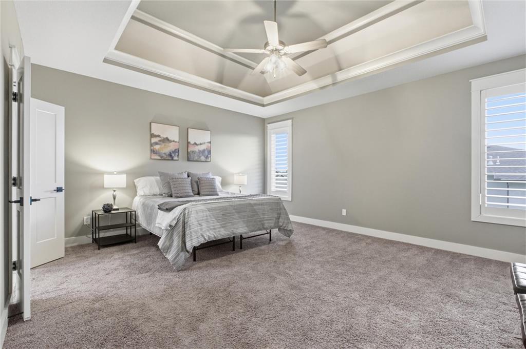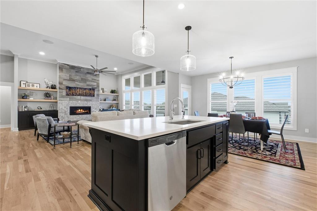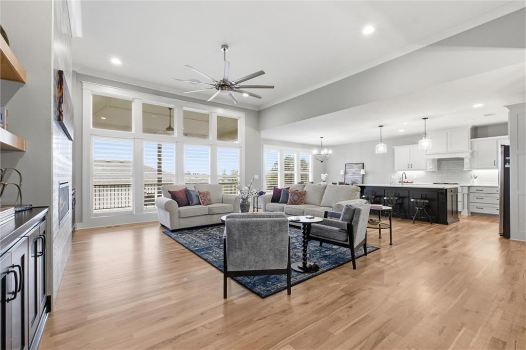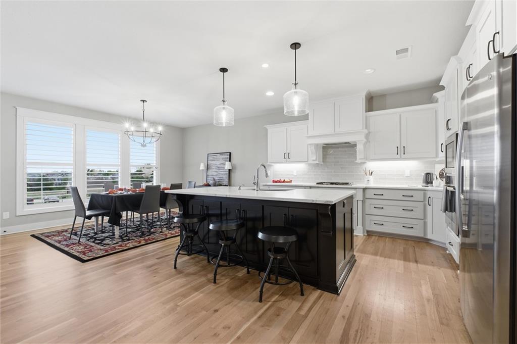 Experience refined living in this exceptional reverse 1.5-story former model home, thoughtfully designed with every upgrade and detail in mind. Perfectly situated on a desirable corner lot within a highly sought-after community and top-rated school district, this residence blends timeless elegance with modern comfort. The main level showcases tall ceilings and an expansive open-concept design, where the living area flows effortlessly onto a covered deck—ideal for morning coffee or evening relaxation with a view. An additional main-floor bedroom offers flexibility for a guest suite or private home office. The luxurious primary suite provides a tranquil retreat, featuring a spa-inspired ensuite with a soaking tub, walk-in shower, and elegant finishes. The lower level is an entertainer’s dream, boasting generous living space, two additional bedrooms, and two full baths—perfect for hosting guests or creating a private family retreat. Exceptional storage abounds, including an impressive, fully excavated area beneath the garage with epoxy flooring—an ideal space for a workshop, fitness area, or additional storage. A three-car garage and full sprinkler system complete this remarkable home, where sophistication meets comfort in every detail.