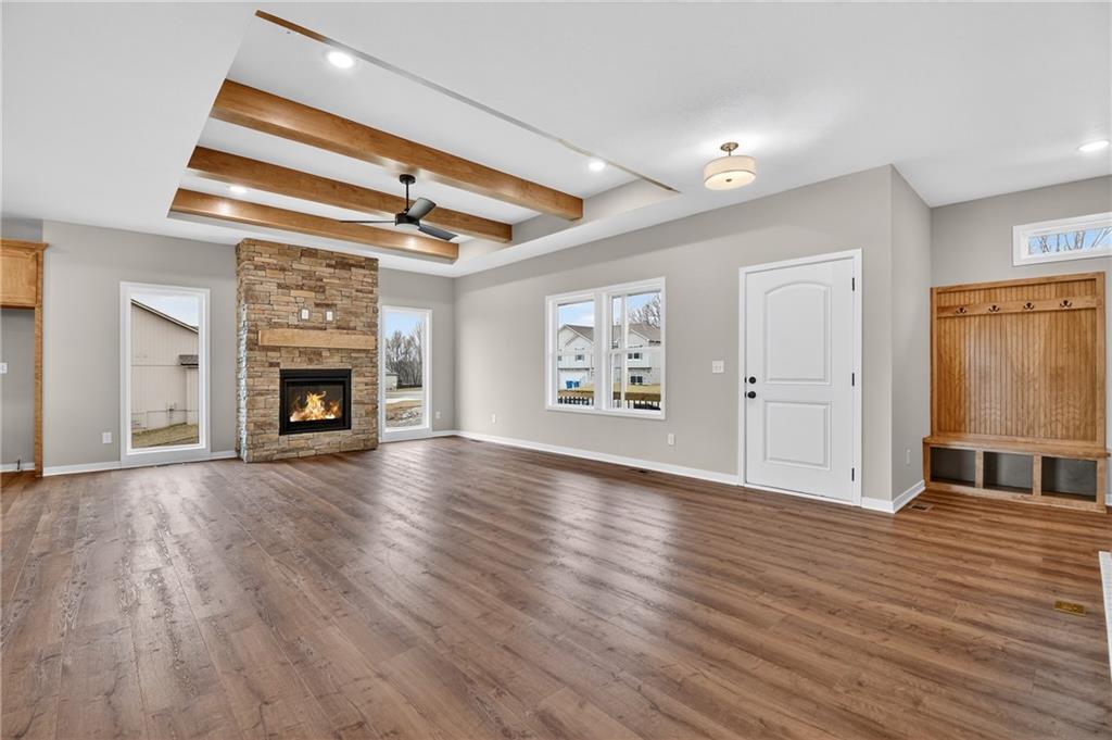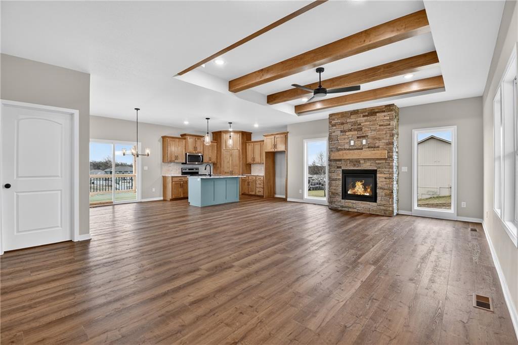 Stunning new construction ranch/reverse 1.5 with walk-out basement and 3-car garage! This 4-bedroom, 3-bath home features an open-concept main level with stained cabinetry, spacious dining area, and inviting living room with fireplace and custom ceiling detail. Convenient mudroom with boot bench and main-level laundry add everyday functionality to this home! Enjoy enhanced accessibility and thoughtful design with all main-level interior doors that are 36” wide, including the primary bedroom, bathroom, and closet doors! The primary suite includes a stunning accent wall, dual walk-in closets, and a beautifully tiled walk-in shower. The Finished lower level features two additional bedrooms, full bath, large family room, and walk-out to covered patio. Even with the additional living space you can benefit from the ample storage spaces offered in the basement! Do not miss your opportunity to enjoy quality craftsmanship and modern finishes inside and out with this new construction home!