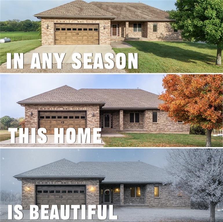 A rare opportunity! Set on approximately 24 acres, this property blends solid construction, peaceful scenery, and exceptional functionality for hunting, livestock, horses, recreation, and equipment storage. The home is built with a full brick exterior and true 2x6 construction—a rare level of quality in today’s market. Brick homes offer unmatched durability, low maintenance, increased insulation, quieter interiors, and long-term energy efficiency. Inside, you’ll find over 2,500 sq ft, freshly painted interiors, and a layout designed for comfort and entertaining. The main level offers an open entertainers dream, 3 bedrooms and 2 bathrooms, with bright living spaces. The walkout lower level is a major asset for buyers needing flexible space. It includes a large family room, bar/entertaining area, and a dedicated office, full bathroom making it ideal for working from home, hosting gatherings, or converting part of the space into a future 4th bedroom or guest suite if desired. The rest of the lower level includes a 2-car garage, creating a total of 4 garage spaces — perfect for vehicles, equipment, hobby storage, or workshop needs. Not only the home but outside, the land is what truly sets this property apart. Approximately 24 acres of mixed terrain include heavily wooded sections, two pastures, and a beautiful creek, making it a prime setting for deer and turkey hunting, cattle or horse operations, ATV riding, shooting sports, gardening, or recreational use. Whether you're looking for a homestead, hobby farm, or private retreat, this acreage checks every box. The impressive 60x40 heated shop offers concrete floors, large overhead doors, and room for tractors, equipment, RVs, trailers, tools, or professional workspace. Two additional lean-tos provide even more covered storage for implements, livestock supplies, or outdoor toys. Easy access to Wellsville, Ottawa, and major highways leading into the KC metro, this home offers both privacy and convenience.