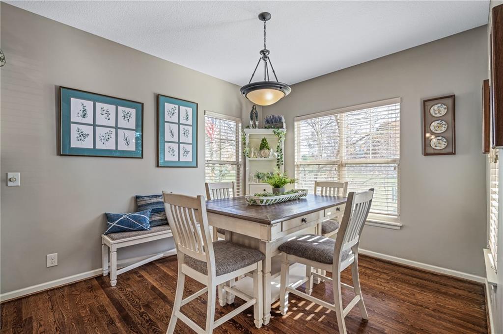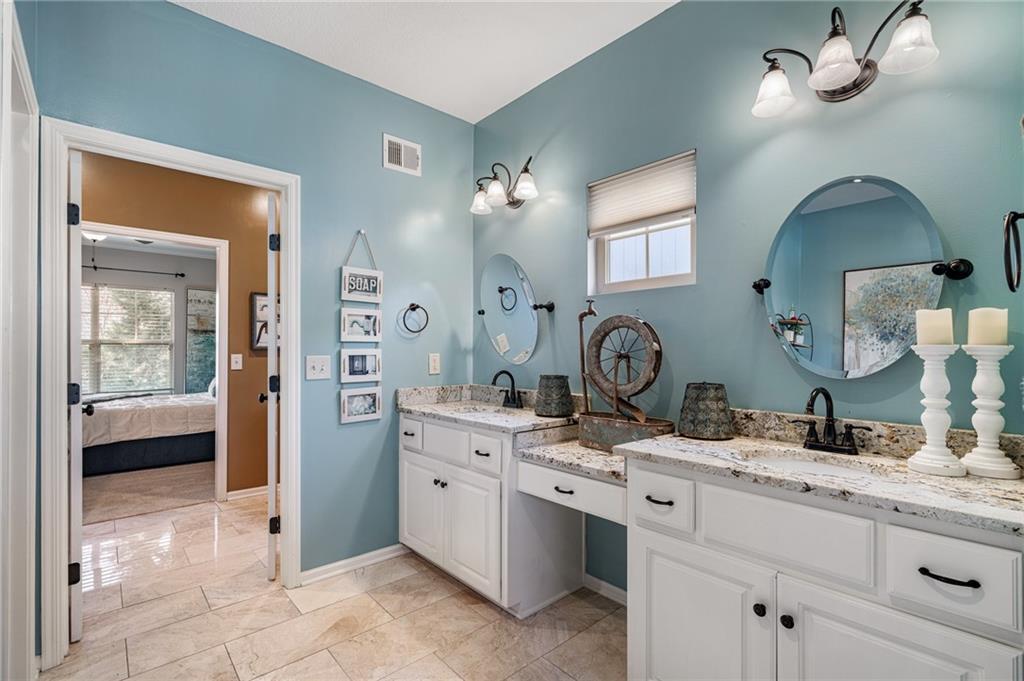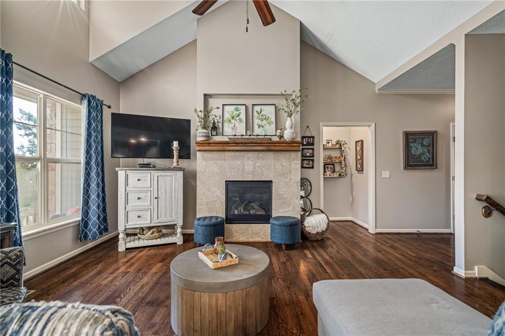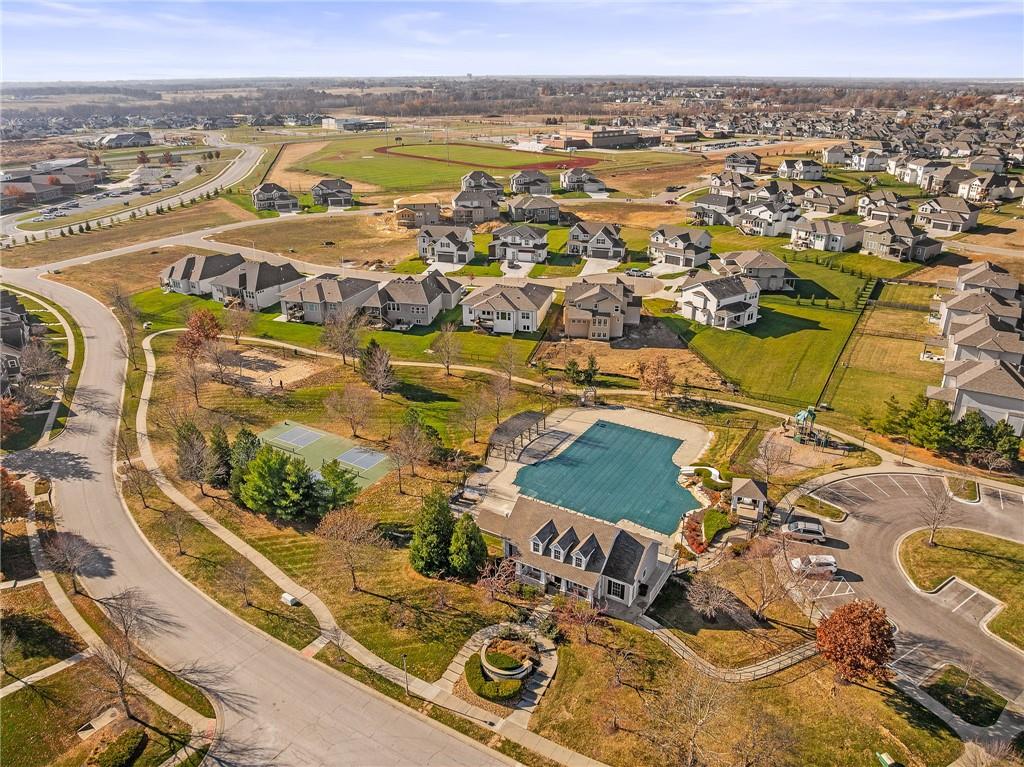 Welcome Home to Comfort, Style & Effortless Living! This stunning 3-bedroom, 2.5-bath Home delivers that “ahhh” feeling from the moment you walk in. You’ll instantly notice the vaulted ceilings, gleaming hardwood floors, and the cozy gas fireplace that anchors the living room—perfect for curling up with coffee or your favorite Kansas City Chiefs game. Step into the modern kitchen featuring granite countertops, a spacious island, and a sun-drenched dining area surrounded by windows—because every meal deserves a little natural light! The primary suite is your own private retreat, new carpet now with a redesigned spa-worthy bathroom showcasing a roomy glass-enclosed shower, soaking tub, elegant vanity area, and large walk-in closet for all your wardrobe wins. Downstairs, discover two more spacious bedrooms—each with its own walk-in closet—connected by a Jack & Jill bathroom with double vanities, ideal for guests or family. Enjoy peaceful neighborhood views and trails just outside your door. This Home blends low-maintenance living with high-style comfort, offering the perfect balance between convenience and luxury. Amenities are all the 4 pools, tennis courts, pickleball courts ,trails, and amenities of the Stonebridge Area! So go ahead—unpack, relax, and start loving where you live!