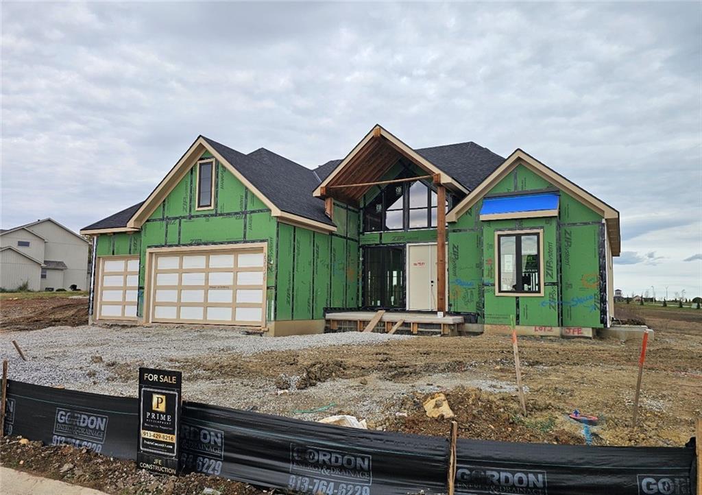 JFE Construction brings their fabulous Gunnison Transitional Rev. 1.5 sty. plan to Prairie Canyon, Johnson Counties newest maintenance provided community conveniently located just west of K-7 hwy. & just south of College Blvd. Dramatic entry opens to L-shaped Great rm/kitchen/dining space & also includes a large covered patio. Luxurious primary suite features a huge walk-in closet and there is a 2nd bdrm. or home office on the main floor as well. Finished daylight LL includes 2 bdrms, 1 bath, wet bar & ample family & recreational space! Exceptional quality & detail you've come to expect from JFE Construction! and still time to make your own interior finish selections.