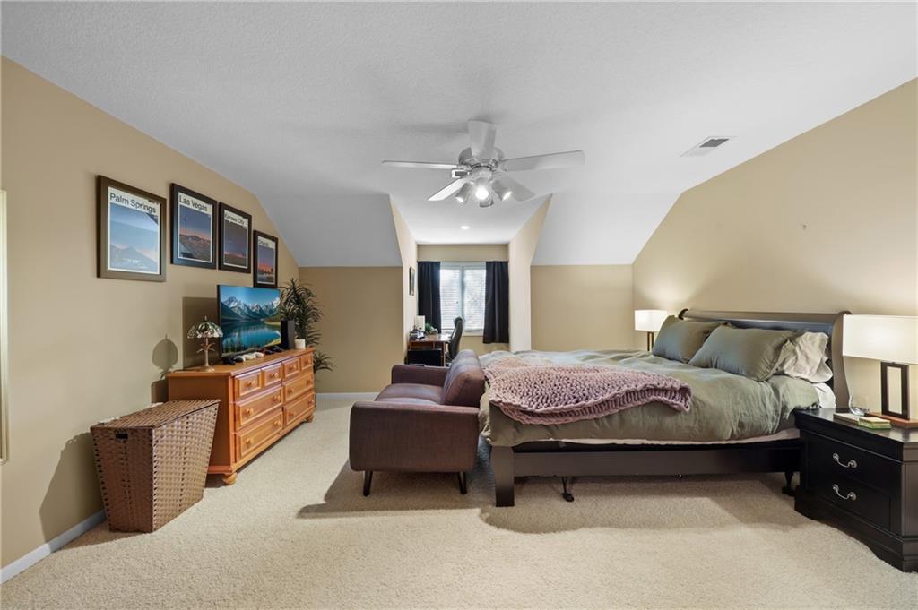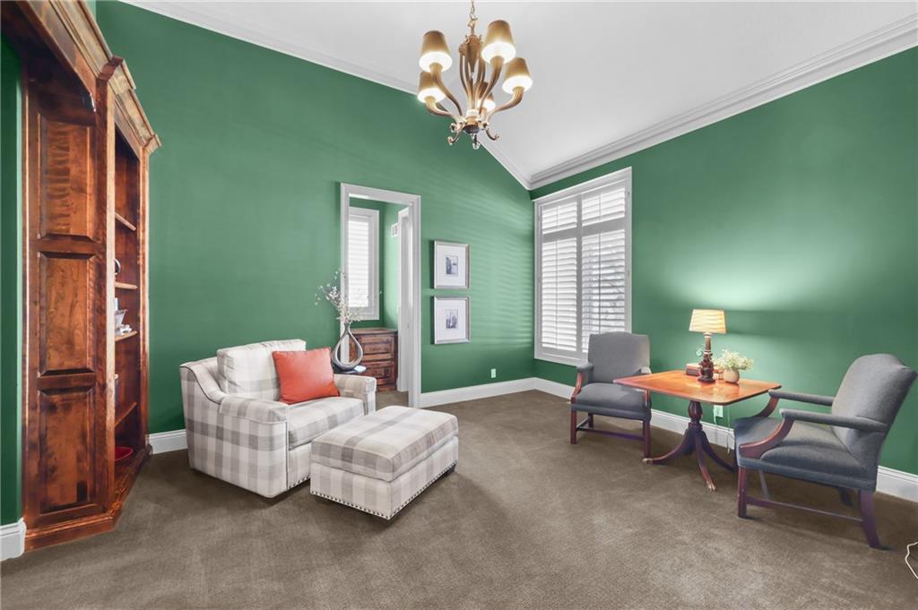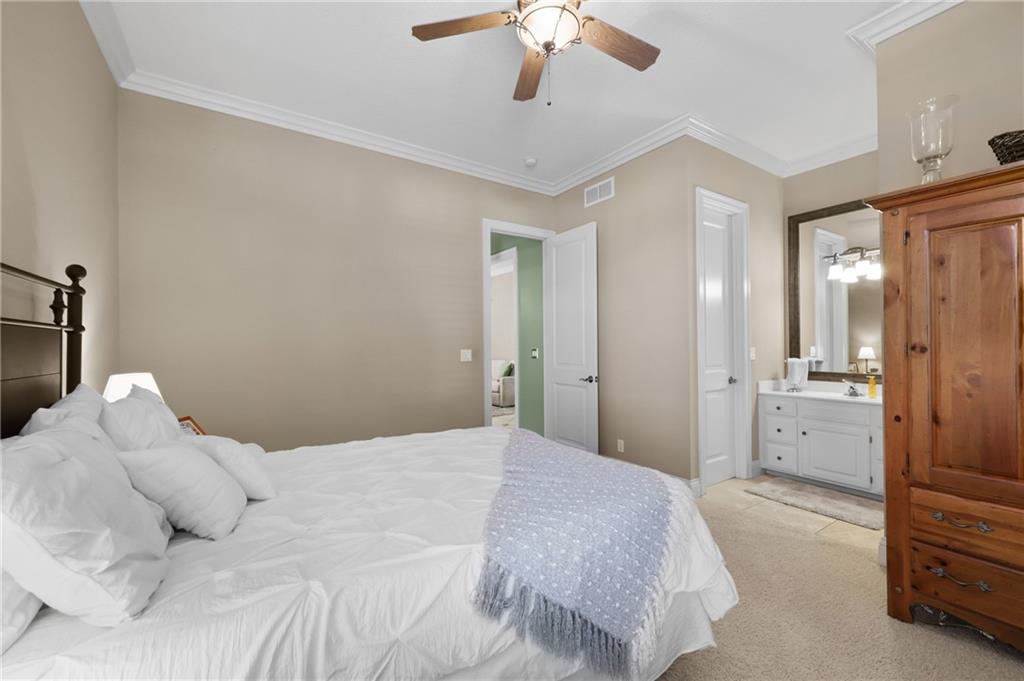 This stunning story-and-a-half home combines elegance, comfort, and functionality in one beautiful package. The open floor plan features a spacious great room overlooking the covered patio and tranquil fountain, perfect for relaxing or entertaining. The chef’s kitchen flows seamlessly to the formal dining room, while the cozy library offers a quiet retreat. The main-level primary suite includes a luxurious ensuite bath, and a second main-floor bedroom with a private bath provides ideal guest accommodations. Upstairs, you’ll find two enormous bedrooms with a Jack & Jill bath, offering abundant space and versatility. The finished daylight lower level is designed for fun and relaxation, featuring a media area, gaming space, full bath, and a huge unfinished storage area. Nestled on a pristine, quiet street in the highly sought-after Lakewood community, this home offers access to full lake amenities, golf course options, and all the charm of resort-style living.