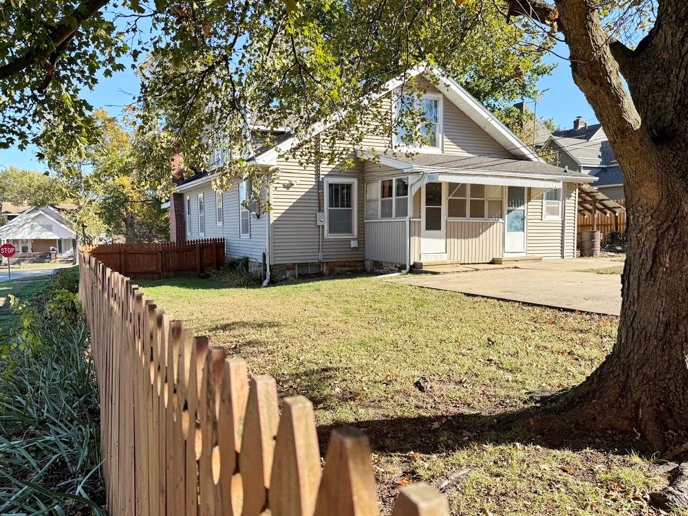Charming Craftsman Style Home for Sale in the Heart of El Dorado Springs, MO for Sale. This classic home features everything you would expect from the beloved craftsman style. Prominent tapered beams support the classic gable roofline above the wide front porch. The artistic brick around the porch also accents the steps leading up to the home. The curb appeal is finished with the historic rock wall that borders the north and east sides of the home, making this home perfectly fit the surrounding downtown El Dorado Springs aesthetics. Inside, the large living room opens nicely into the spacious formal dining room. These spaces hold to the craftsman features including solid wood floors, tapered beams, decorative moldings, brick fireplace, and built-in furniture elements such as window seats, benches, & bookcases with decorative leaded window doors. The surprisingly spacious home boasts over 2,500 finished square feet on the main level and upstairs. There are 4 bedrooms with a possible 5th that could also be used as an office or den. Three full bathrooms include one on the main floor and 2 upstairs, ensuring maximal functionality for residents and guests. As a bonus, a cellar basement offers storage, shelter from storms, and peace of mind. Behind the home is a partially fenced backyard for privacy and a carport providing convenient parking and outdoor storage. Don’t miss your opportunity to own a truly beautiful and historic home that is full of modern comfort and function.