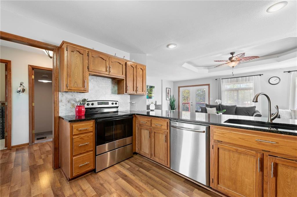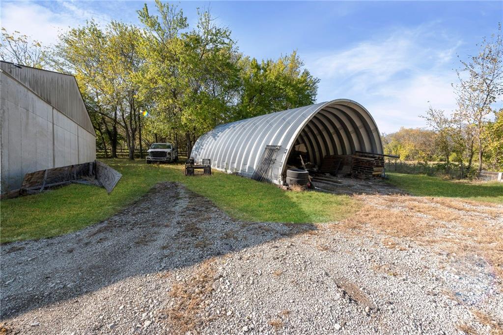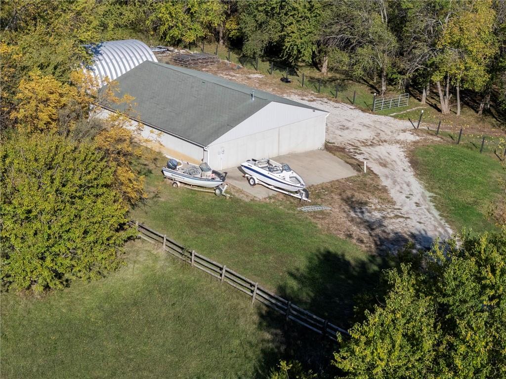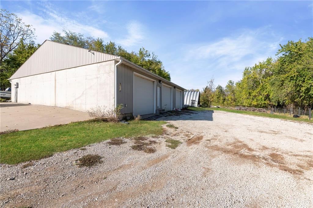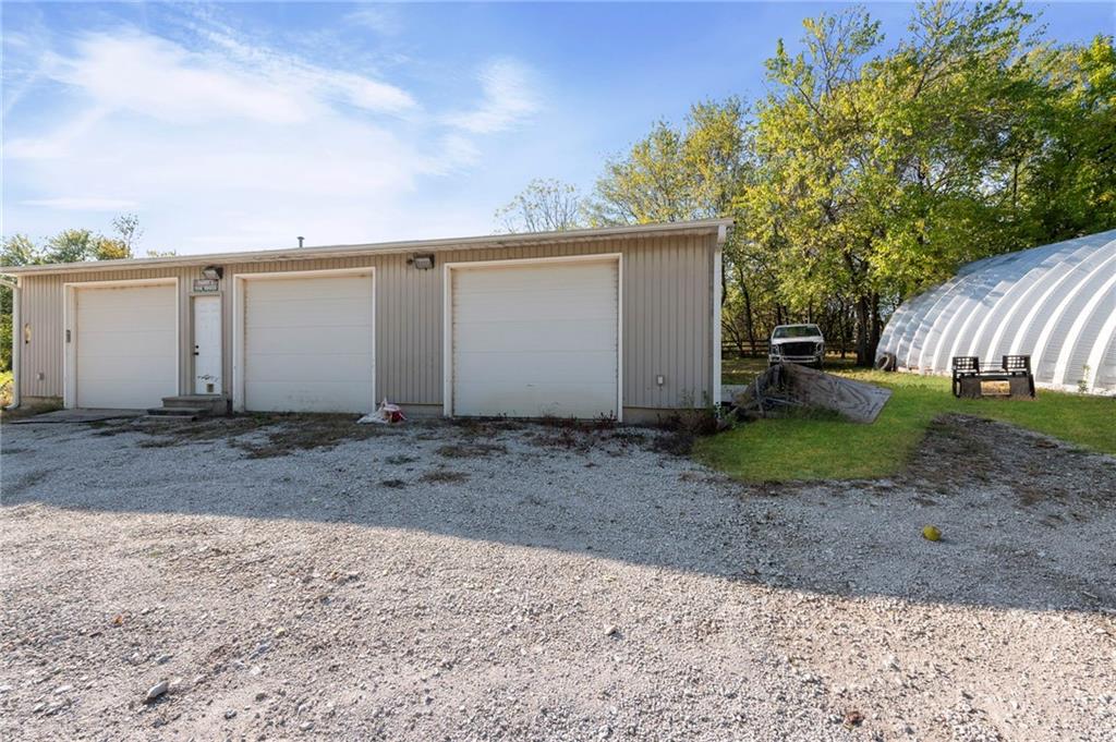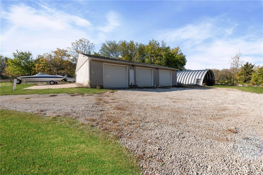 Discover your secluded dream estate nestled at the end of a long, winding driveway on a sprawling 10.22-acre lot, this Ranch-style residence offers a private sanctuary with the freedom of country living. The spacious interior on the main level features 3 bedrooms and 3 bathrooms with a thoughtful layout, including a combination living and dining room, and an eat-in kitchen with a breakfast nook. Enjoy the convenience of a main-level laundry room off of the primary bedroom and a sunroom. The finished walk-out basement expands your living options including 3 bedrooms and 2 bathrooms and a wet bar area. Enjoy the unique property amenities featuring a dedicated sauna for relaxation and a workshop perfect for car enthusiasts or hobbyists. Outside, the stucco-exterior home features a welcoming front porch, and a deck overlooking your acreage. The property is partially fenced where you have the freedom to enjoy your extensive land to its fullest. This property is a rare find, offering space, luxury, and privacy in a peaceful setting only 30 miles from downtown kansas city.