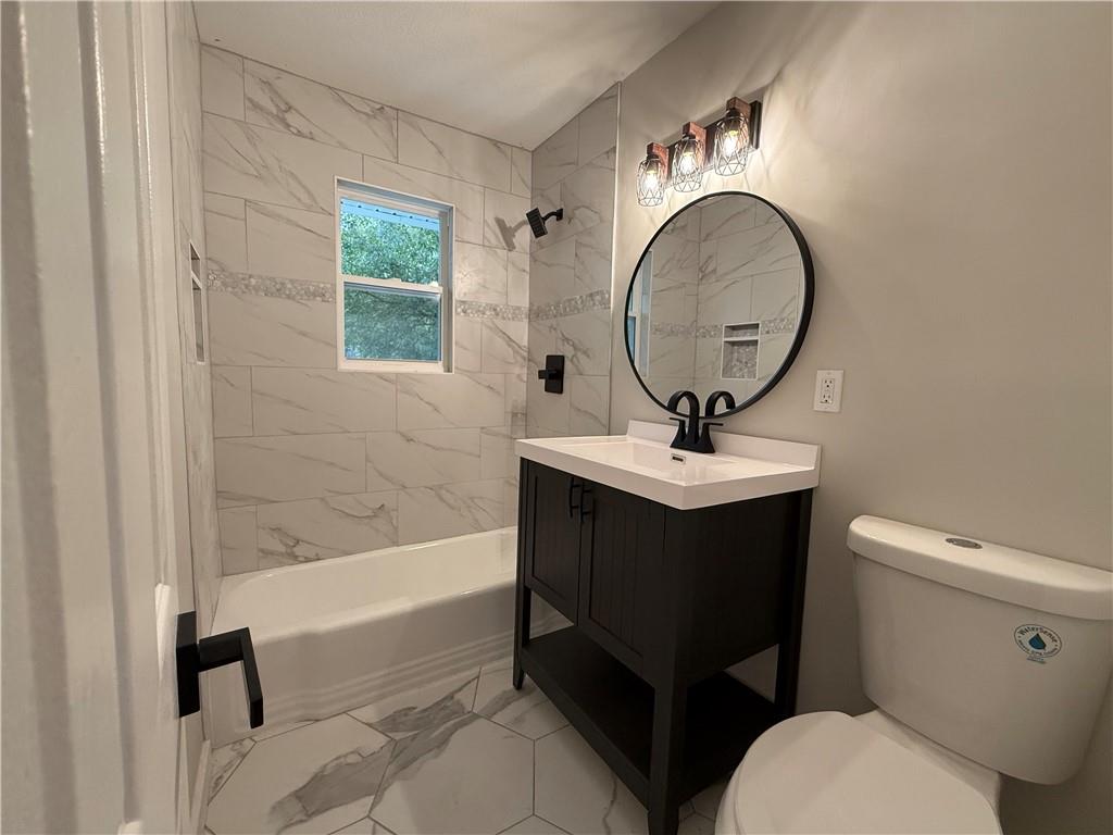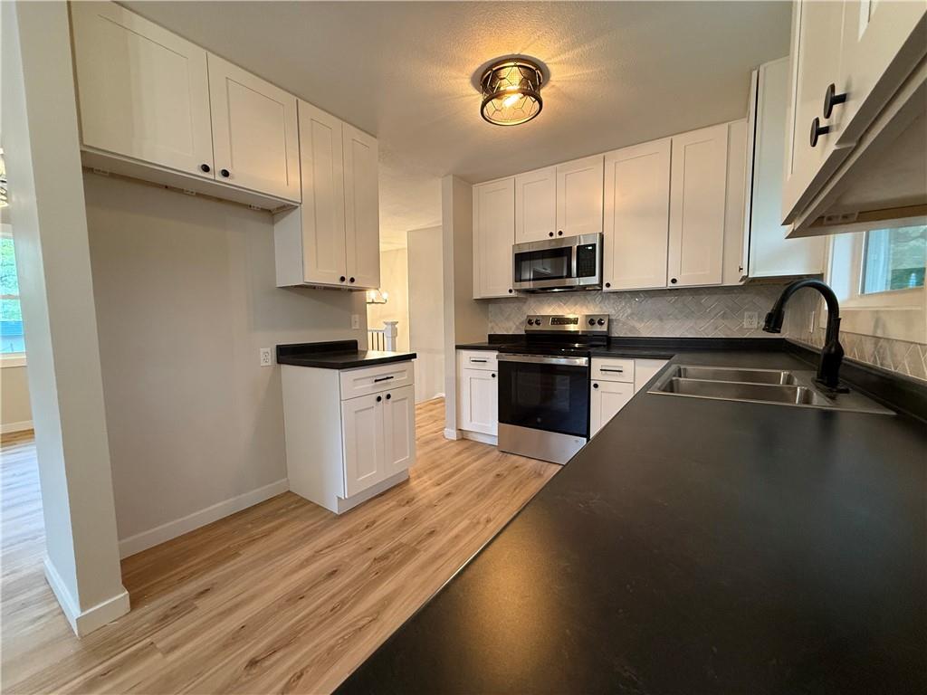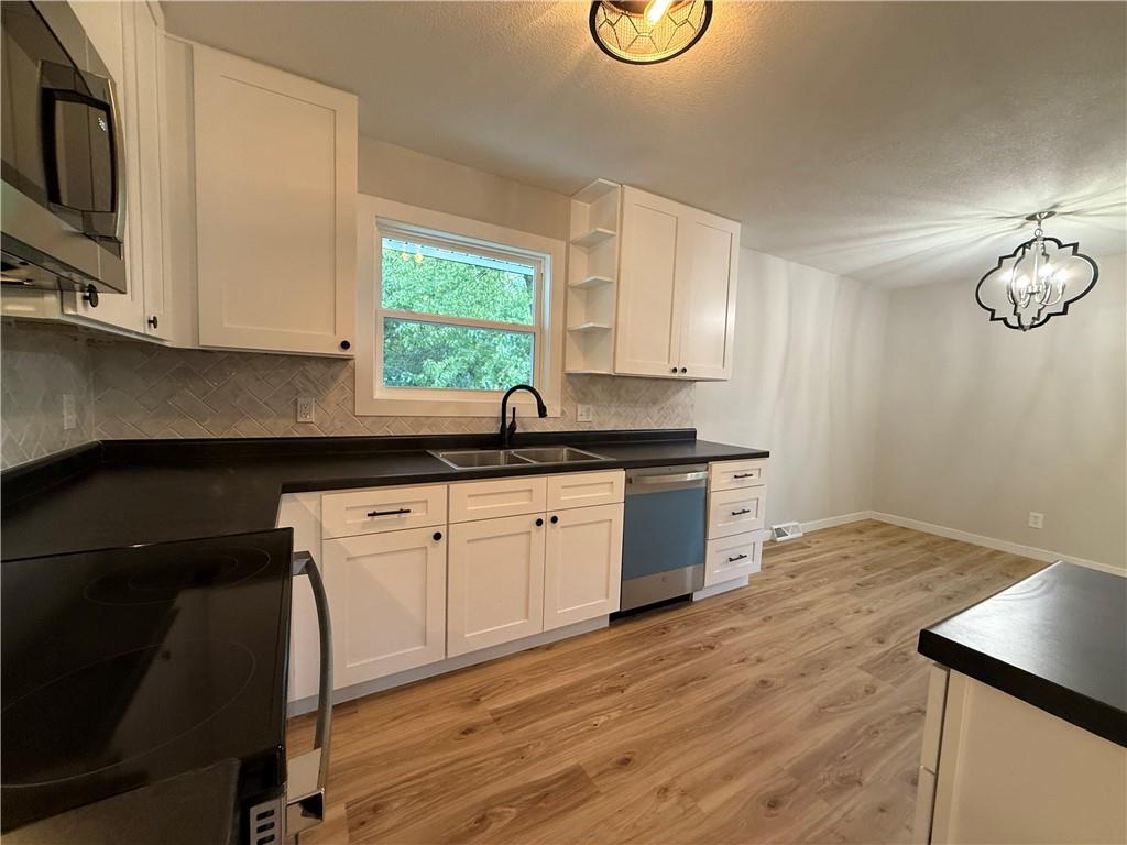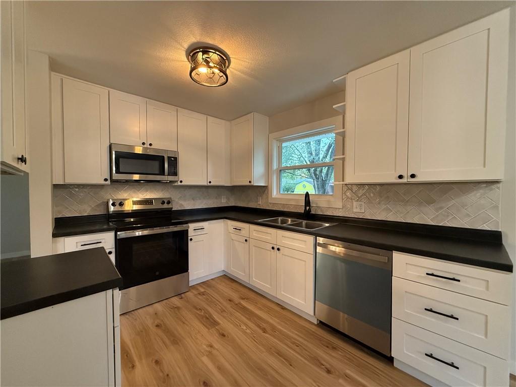 Welcome Home! Completely remodeled 4 bedroom, 2 bathroom home in a convenient Northland location. This move-in ready charmer features brand new luxury vinyl plank flooring throughout and fresh interior paint, along with all new trim, interior and exterior doors, and updated lighting. The kitchen shines with new cabinets, countertops, and stainless steel appliances. Both bathrooms have been beautifully updated with ceramic tile floors and tiled shower surrounds for a fresh, modern feel. Enjoy peace of mind with a new roof and low-maintenance vinyl siding. The one-car garage provides extra storage and everyday convenience. Close to schools, parks, shopping, and quick highway access—this one is a must-see!