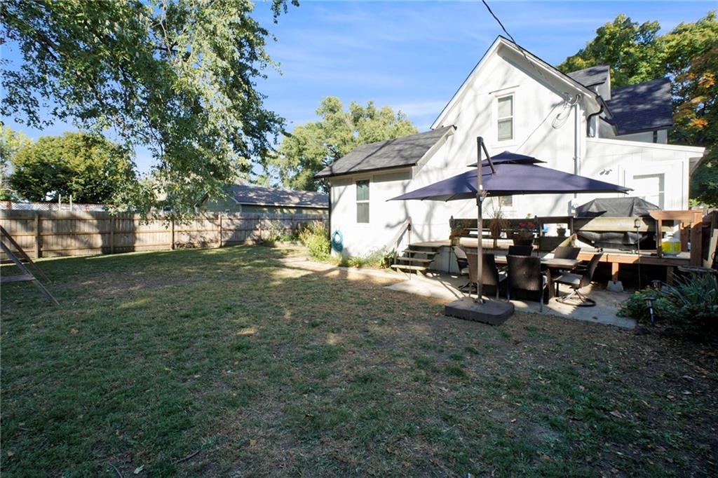 Charming, updated farmhouse in the heart of town! This 3-bedroom, 3-bath 1.5 Story Home blends character and modern comfort from the moment you step through the front door. One of the oldest homes in Louisburg, it has recent major updates including NEW Roof 2 years, HVAC system and water heater 4 years ago!!! The open main level features a light-filled living and dining space with neutral tones and cozy carpet, flowing easily into the kitchen. You’ll love the stylish updates — white cabinetry, granite counters, tile backsplash, and sleek stainless steel appliances. Upstairs, spacious bedrooms offer warmth and charm, with unique ceiling angles and large windows bringing in natural light. Both bathrooms are beautifully maintained, with clean finishes and thoughtful storage. Step outside to enjoy a private fenced yard, perfect for gatherings or playtime under the shade of mature trees. A large deck provides plenty of room for grilling or relaxing, and there’s a shed for added storage. With its inviting front porch, modern updates, and convenient location near shopping, dining, and parks — this home is the perfect mix of classic charm and everyday functionality!