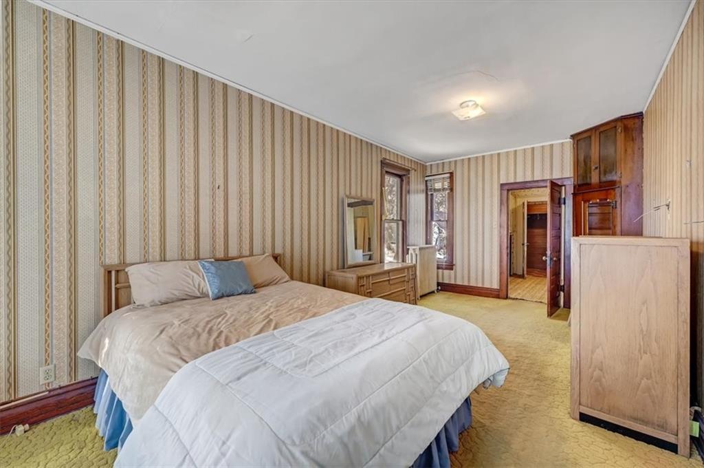 Back on the market & PRICED TO SELL! This 1800's home sits on over a quarter of an acre corner lot and boasts over 4,000 finished square feet plus a detached carriage house/garage with electric, water and gas and a usable attic area above. Detailed original woodwork to include grand staircase and beautiful hardwood floors. 5 bedrooms plus a bonus room/office to include a primary suite on both the main level and the upper level. The upper level also has a second partial kitchen. Lots of room for family gatherings or entertaining. Don't miss this chance to restore home full of potential and history. Just minutes from Downtown Leavenworth and Fort Leavenworth. This property is being sold as-is and is priced to reflect the needed repairs and updates.