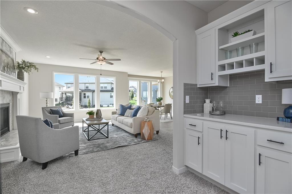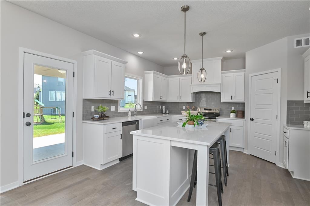 IMPROVED PRICING ON THIS COMPLETED HOME! You will love the additional landscaping and lake views. Prieb Homes "Harlow 5" plan showcases a grand entry with an open concept. The two-story vaulted entry leads to an open great room, kitchen and breakfast area. The large center island in the kitchen has ample work space plus bar-height seating. A boot bench and entry closet are in the mud room, and a dry bar is located between the great room and dining room. Plus a 5th bedroom/flex room on the main level for guest or to use as an office. The upstairs laundry room can be accessed from the hallway or the walk-in closet of the spacious master bedroom. The master bathroom includes a tub and walk-in tile shower. All secondary upstairs bedrooms have private bathroom entrances. Walking distance to elementary school