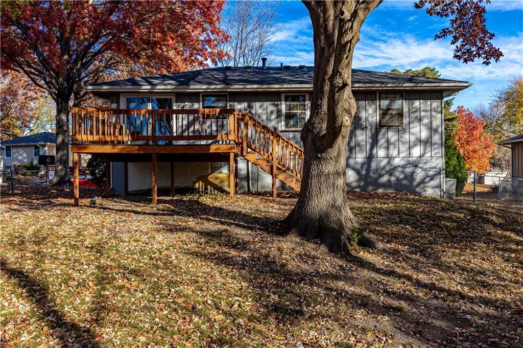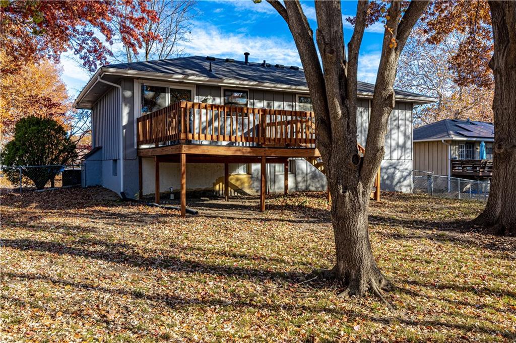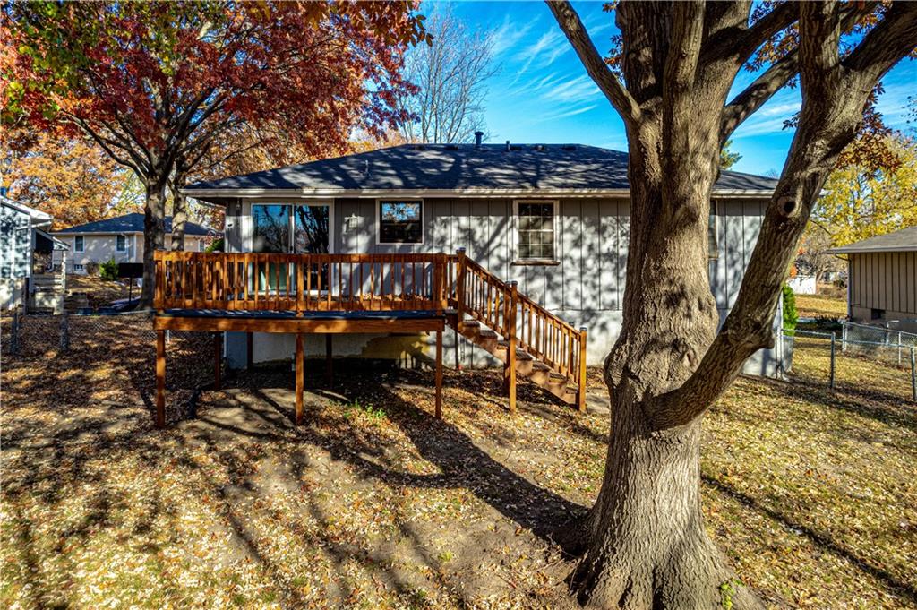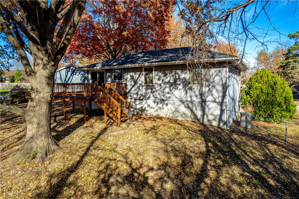 Split-entry home (1,018 sq ft) in Lee’s Summit on a quiet pseudo-cul-de-sac (elbow) street. 3 Bedroom, 1 Bath, 2-Car Garage, 1,018 Sq Ft, 0.239 Acre Lot, Built in 1978. Features include wood siding with brick accents, composition shingle roof, forced air heat, concrete foundation, partially-finished basement (an additional 317 sq ft), open porch, and newly refurbished wood deck. Located in the Lee’s Summit R-7 School District: Prairie View Elementary, East Trails Middle School, and Lee’s Summit High School. Just steps from Miller J. Fields Park, featuring a splash pad, tennis courts, playground, walking trail, and open green space. Minutes to downtown Lee’s Summit, shopping, dining, and commuter routes via 291 and 50 Highways. 1205 SE 5th Street, Lee’s Summit, MO 64063.