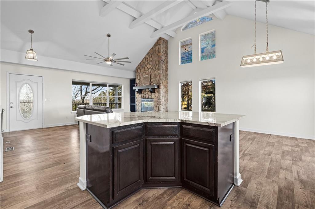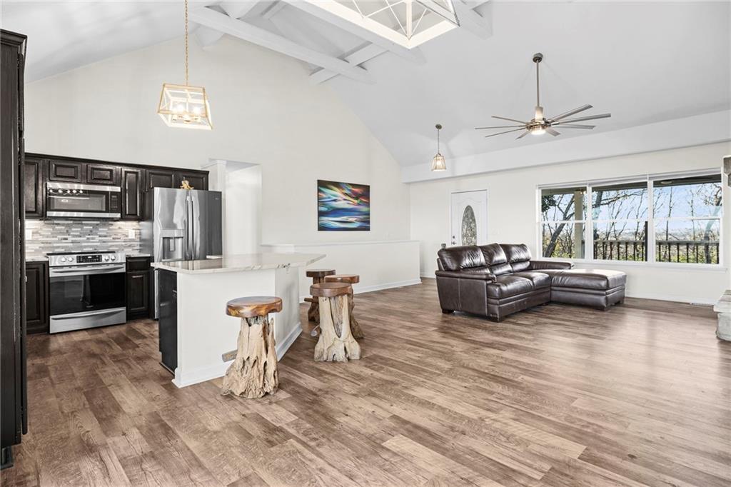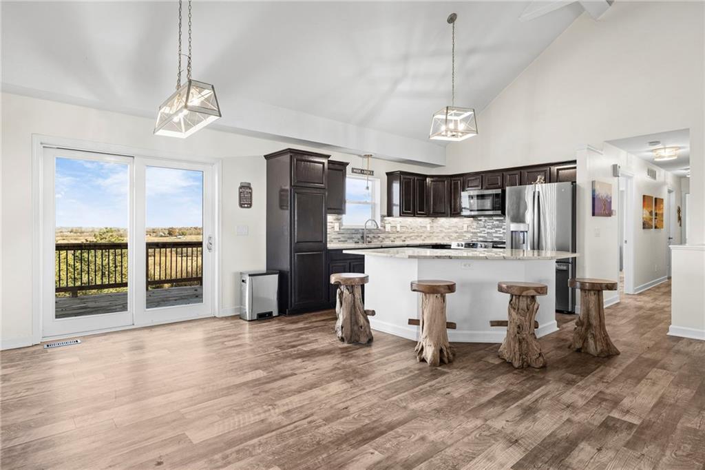 Welcome home to this beautiful 4-bedroom ranch/reverse nestled on 3 peaceful acres just outside of town. Step inside to find a warm, open layout with vaulted ceilings, a stone fireplace, and plenty of natural light that makes the great room feel like a cozy retreat. The updated kitchen shines with quartz countertops, a large island, and stainless steel appliances — perfect for cooking, entertaining, or gathering with friends. The primary suite has been tastefully updated, offering comfort and modern style. Downstairs, the finished walkout lower level adds even more living space for movie nights, hobbies, or guests. Outside, you’ll love the expansive deck with nearly 40-mile views — the perfect backdrop for a morning coffee or evening sunset. A 2-car garage connects to the home, plus a newer large carport addition out back that’s ideal for parking, storage, or even transforming into a festive party space. The backyard playground is a true country retreat — complete with a double firepit area, outdoor wet bar crafted from a repurposed grain silo, and plenty of room to roam. Bring your animals too! A chicken coop, storage shed, and covered/enclosed outdoor animal area are all ready for you. This gated property offers the best of country living — privacy, charm, and unbeatable views — yet it’s still close to town conveniences. By appointment only. Contact the listing agent today for details or to schedule your private showing!