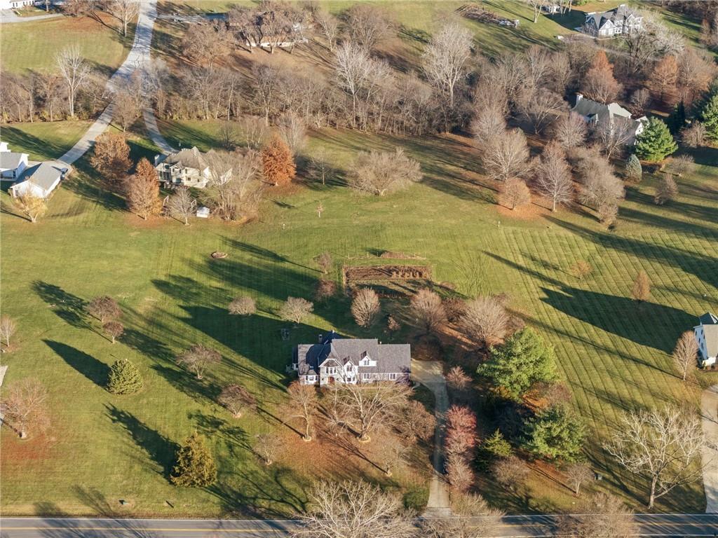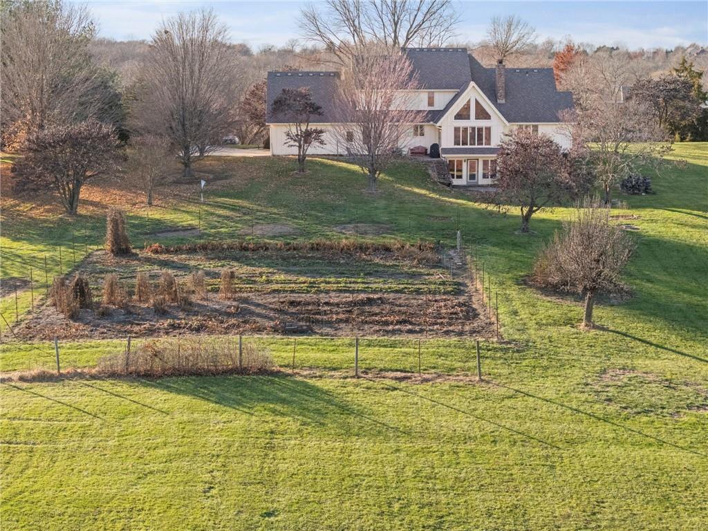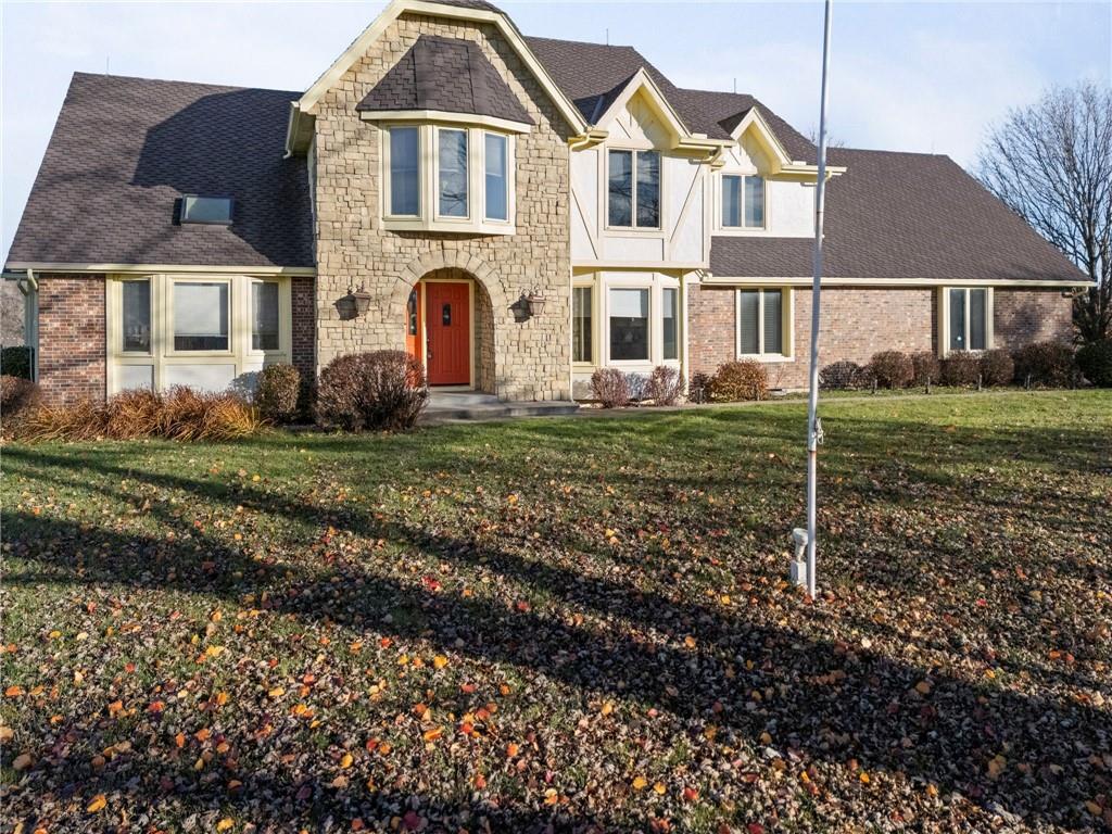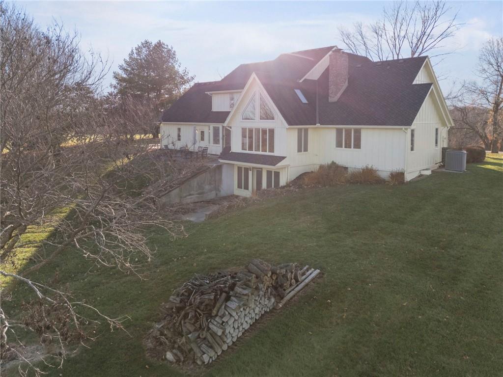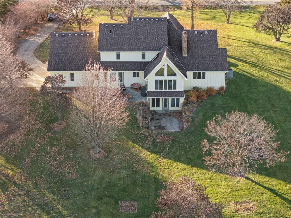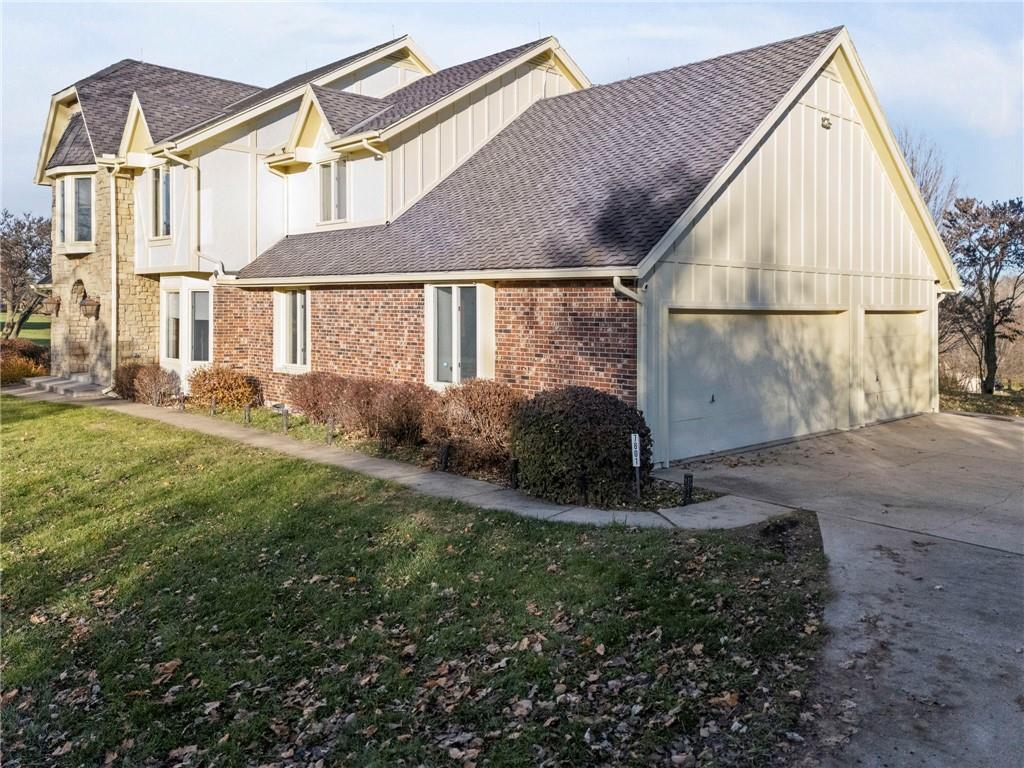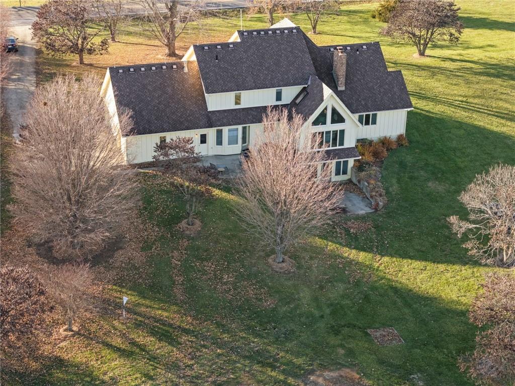 If you’ve been waiting for a home that truly stands apart, this one delivers. Set on nearly 3 serene acres in Weatherby Highlands, tucked inside unincorporated Platte County, this 1.5-story offers the privacy of country living with the convenience of the city within minutes in all directions. The great room steals the show with grand vaulted ceilings with rich wood beam accents, skylights, and a soaring wall of windows overlooking your land. Enjoy a glass of wine with friends gathered around the fire burning in the brick fireplace of the great room. The updated kitchen features hardwood floors, painted cabinets, coffered ceiling, granite counters, island with gas cooktop, generous pantry, and an inviting breakfast area wrapped in natural light and overlooking the patio. Formal dining and main-level laundry make everyday living easy. Your main-floor primary suite is spacious, filled with natural light and offers a sitting area in front of the private fireplace. The primary bath features double walk-in closets, dual sinks, and a jetted tub surrounded by natural light. The 2nd level overlooks the great room below, and offers 3 large bedrooms, 2 full baths, and a loft with custom built-ins that work beautifully as a library or gathering area. The unfinished walkout basement offers incredible potential. With a brick wood-burning fireplace already in place, this level is primed for a future media room, game area, or guest suite. Outside, the property shines with open lawn space, fruit trees, bluebird houses, and a garden full of established strawberries. It’s a peaceful setting you rarely find this close to Kansas City. This property fulfills the desire to escape city life and settle into the luxury of this home and the joy of having a few acres of serenity. This is the kind of home that makes buyers stop scrolling and start dreaming. This property is within 15 minutes of KCI airport, Zona Rosa and The Legends.