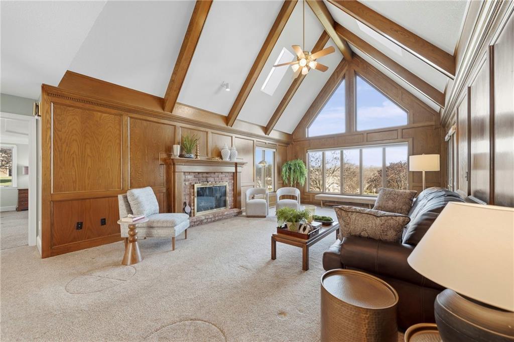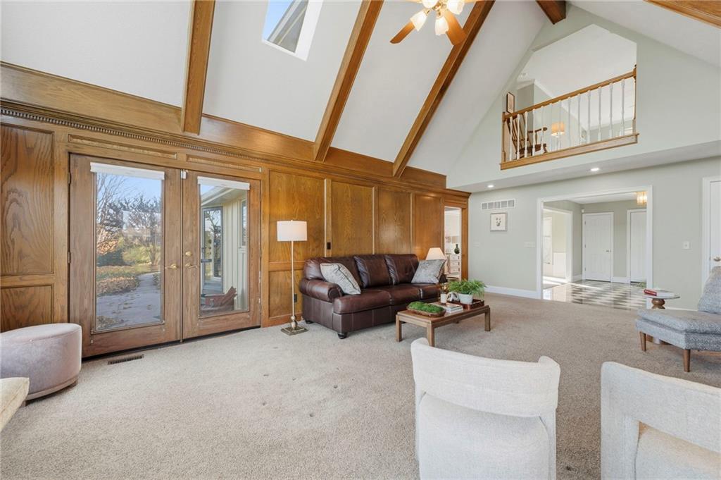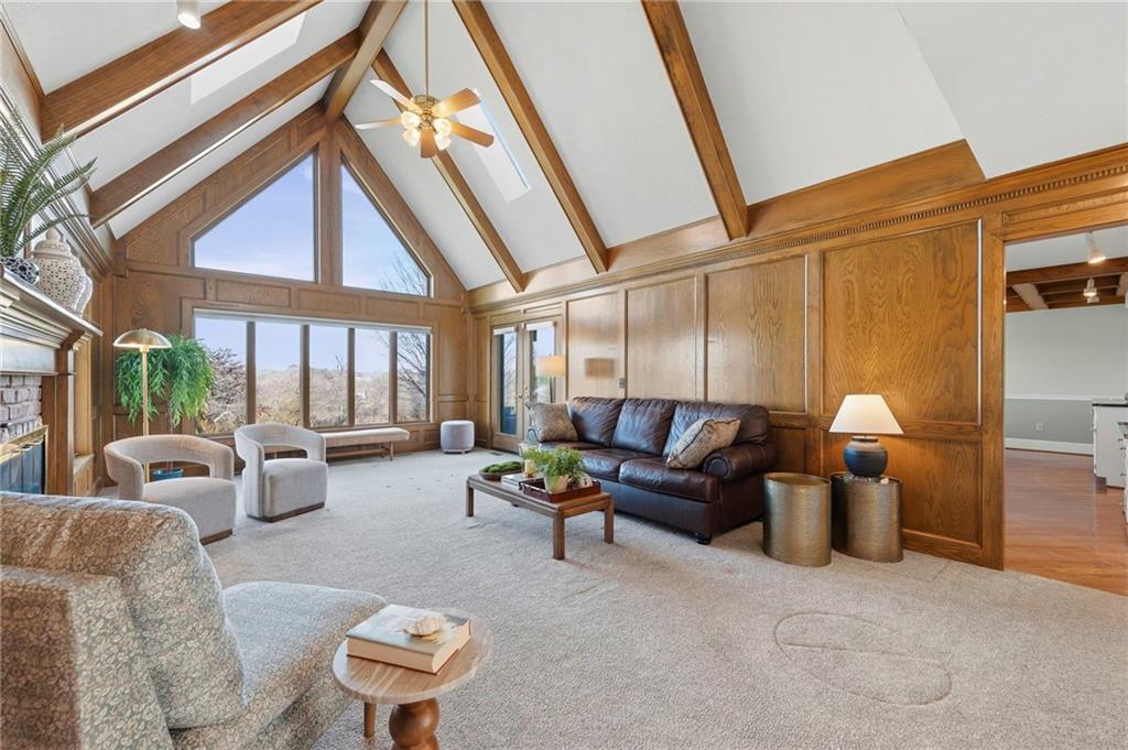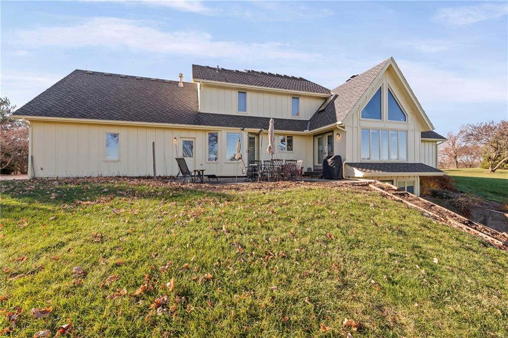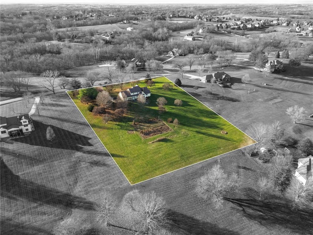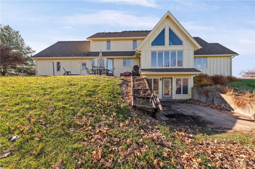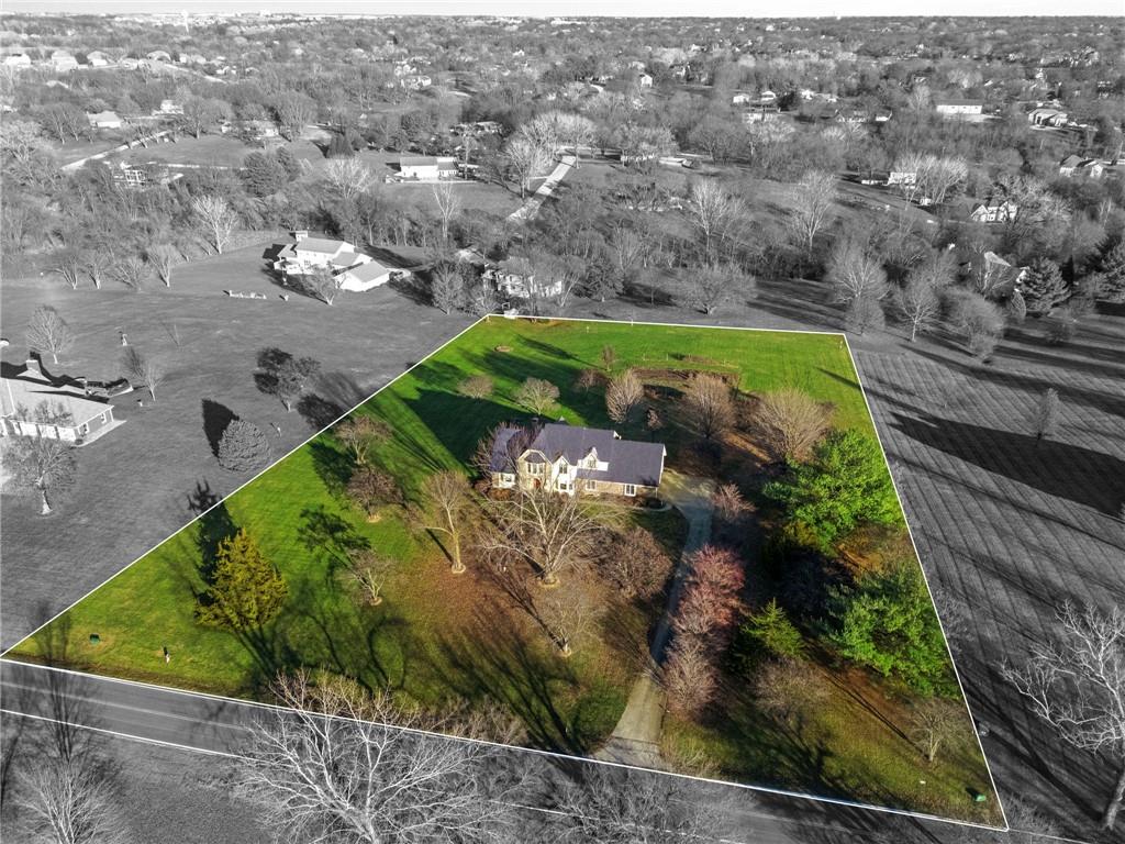 If you’ve been waiting for a home that truly stands apart, this one delivers. Set on nearly 3 serene acres in Weatherby Highlands, tucked inside unincorporated Platte County, this 1.5-story offers the privacy of country living with the convenience of the city within minutes in all directions. The great room steals the show with grand vaulted ceilings with rich wood beam accents, skylights, and a soaring wall of windows overlooking your land. Enjoy a glass of wine with friends gathered around the fire burning in the brick fireplace of the great room. The updated kitchen features hardwood floors, painted cabinets, coffered ceiling, granite counters, island with gas cooktop, generous pantry, and an inviting breakfast area wrapped in natural light and overlooking the patio. Formal dining and main-level laundry make everyday living easy. Your main-floor primary suite is spacious, filled with natural light and offers a sitting area in front of the private fireplace. The primary bath features double walk-in closets, dual sinks, and a jetted tub surrounded by natural light. The 2nd level overlooks the great room below, and offers 3 large bedrooms, 2 full baths, and a loft with custom built-ins that work beautifully as a library or gathering area. The unfinished walkout basement offers incredible potential. With a brick wood-burning fireplace already in place, this level is primed for a future media room, game area, or guest suite. Outside, the property shines with open lawn space, fruit trees, bluebird houses, and a garden full of established strawberries. It’s a peaceful setting you rarely find this close to Kansas City. This property fulfills the desire to escape city life and settle into the luxury of this home and the joy of having a few acres of serenity. This is the kind of home that makes buyers stop scrolling and start dreaming. This property is within 15 minutes of KCI airport, Zona Rosa and The Legends.