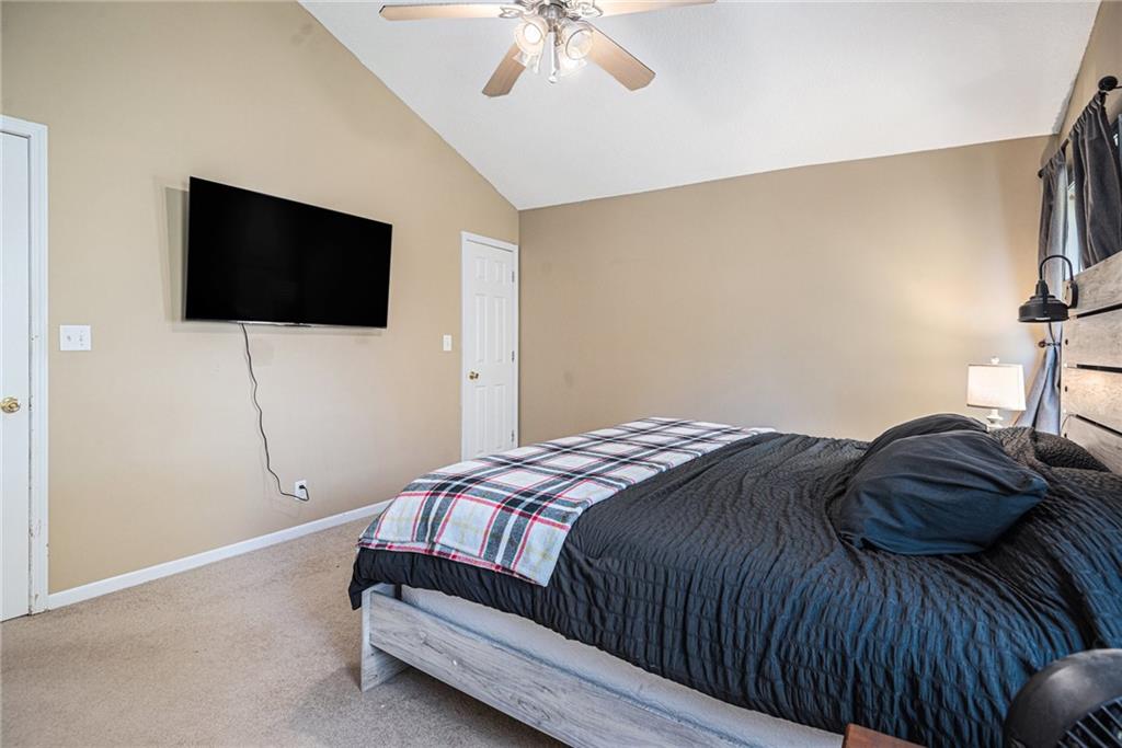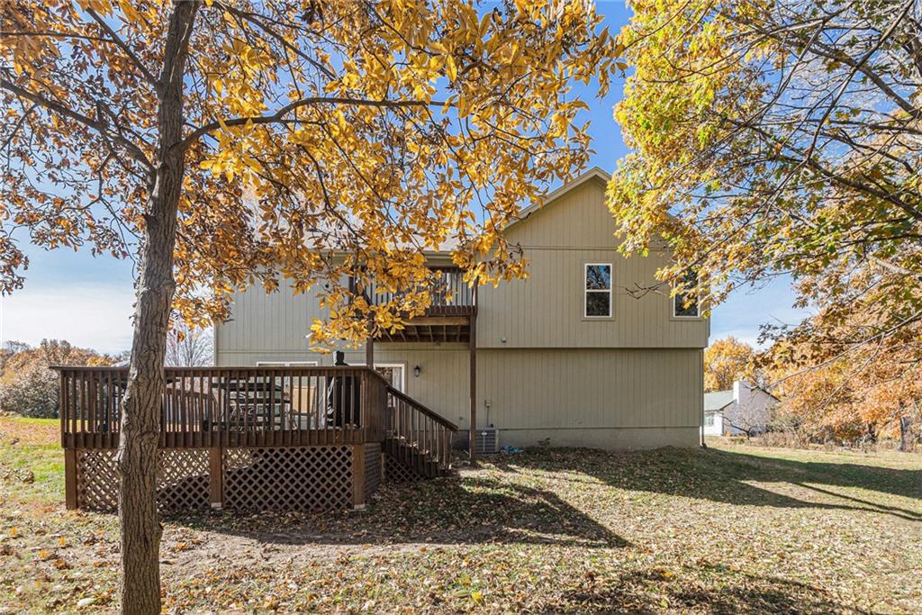 Welcome home! Well maintained split entry located on a peaceful lot backing to green space at just over an acre! Front porch offering curb appeal and charm. Walk into the cozy living room space with a vaulted ceiling and floor to ceiling stone fireplace. Upstairs is the kitchen/dining room combo with wood floors and plenty of cabinet space. Right down the hall is the primary suite with a newly updated bathroom and two additional bedrooms with a hall bath. Finished basement downstairs with a half bath and additional storage space. Come check it out!